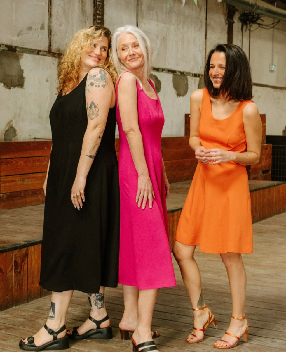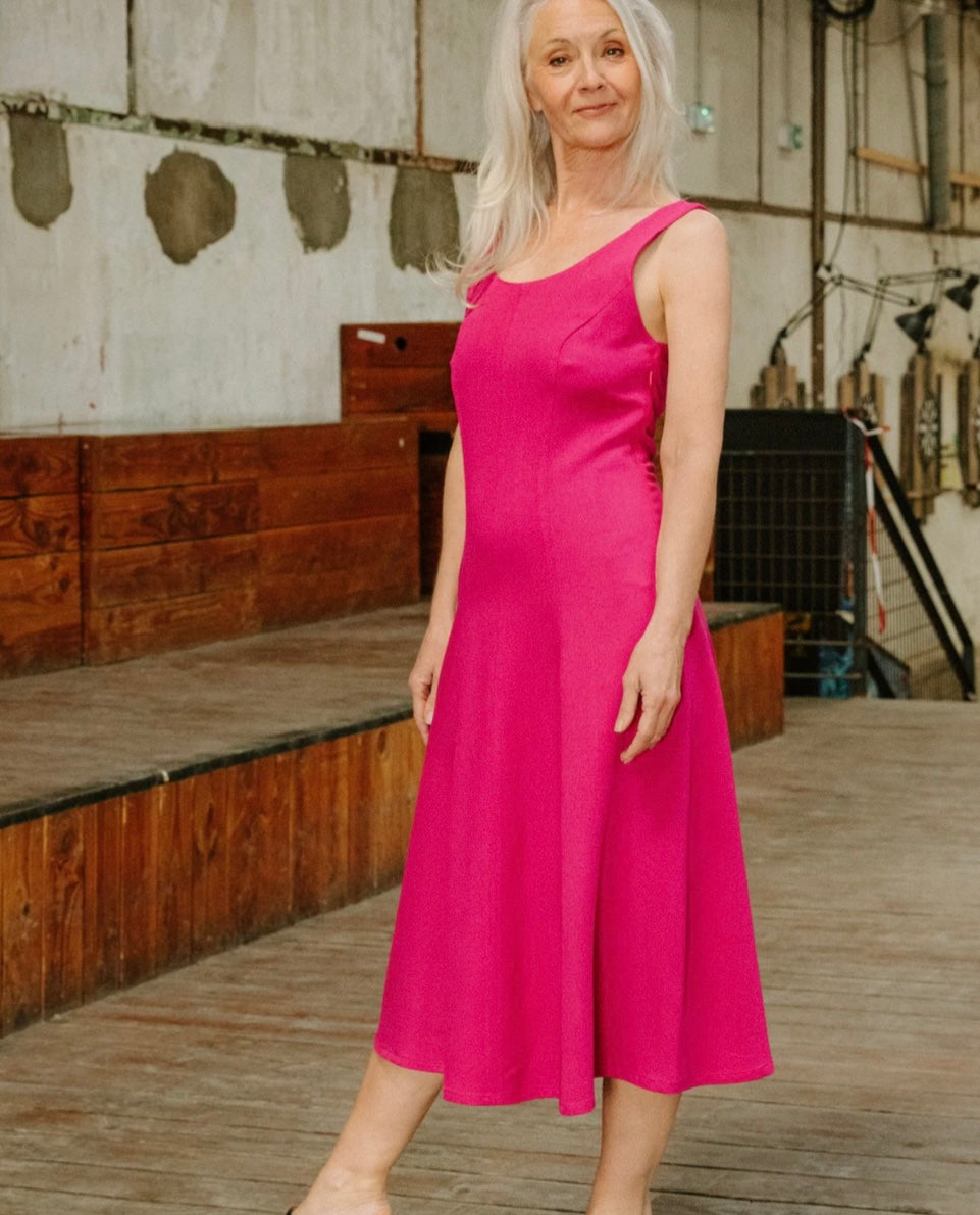 LINGER is the dress that blends femininity with effortless style. The pattern features precise panel construction for a beautifully clean, sculpted silhouette. The shape is long and fluid, light to wear, and ultra comfortable thanks to its wide straps. The pattern comes in 4 versions: irresistible with a deep neckline that reinvents the racerback, more everyday with a higher neckline (bra-friendly!), unforgettable in a long version and playful in a short version. Its clean, minimalist cut lends itself to every mood and every occasion.