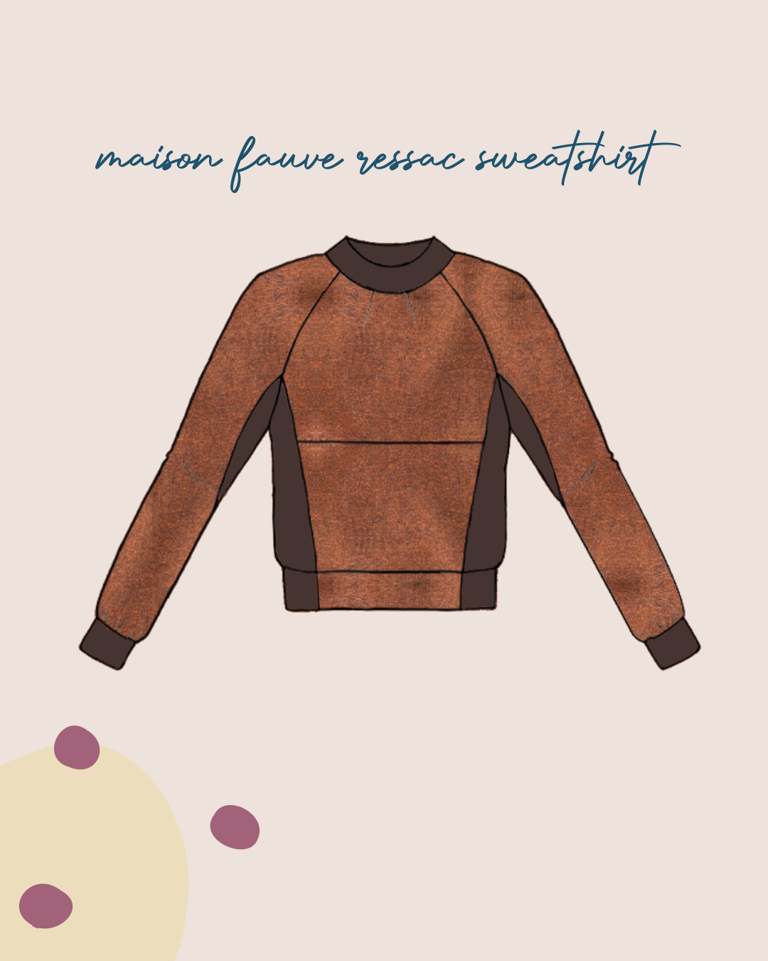 The kit contains all supplies you will need apart from the sewing pattern, to make one of our favourite autumn / winter wardrobe staples RESSAC sweatshirts - a must have modern sweatshirt pattern with signature Maison Fauve design elements, paired with our finest quality sweat-shirting and french terry fabrics in a range of plain colours and prints.