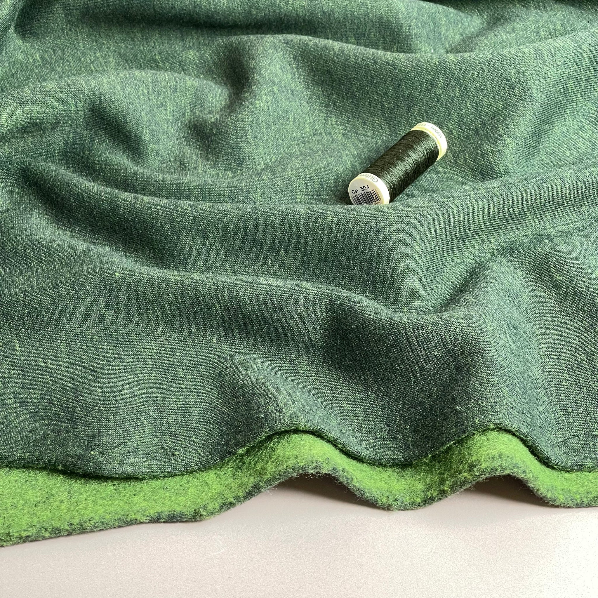 We are delighted to present this snuggly and soft, high quality brushed sweat-shirting fabric with melange effect and contrast colour warm brushed back on the reverse side. This fabric is ideal for making hoodies, joggers, cardigans, winter warm dresses and gowns, anything you’d like to snuggle up in the winter cold days. It comes in a beautiful range of colours and is 150cm wide.