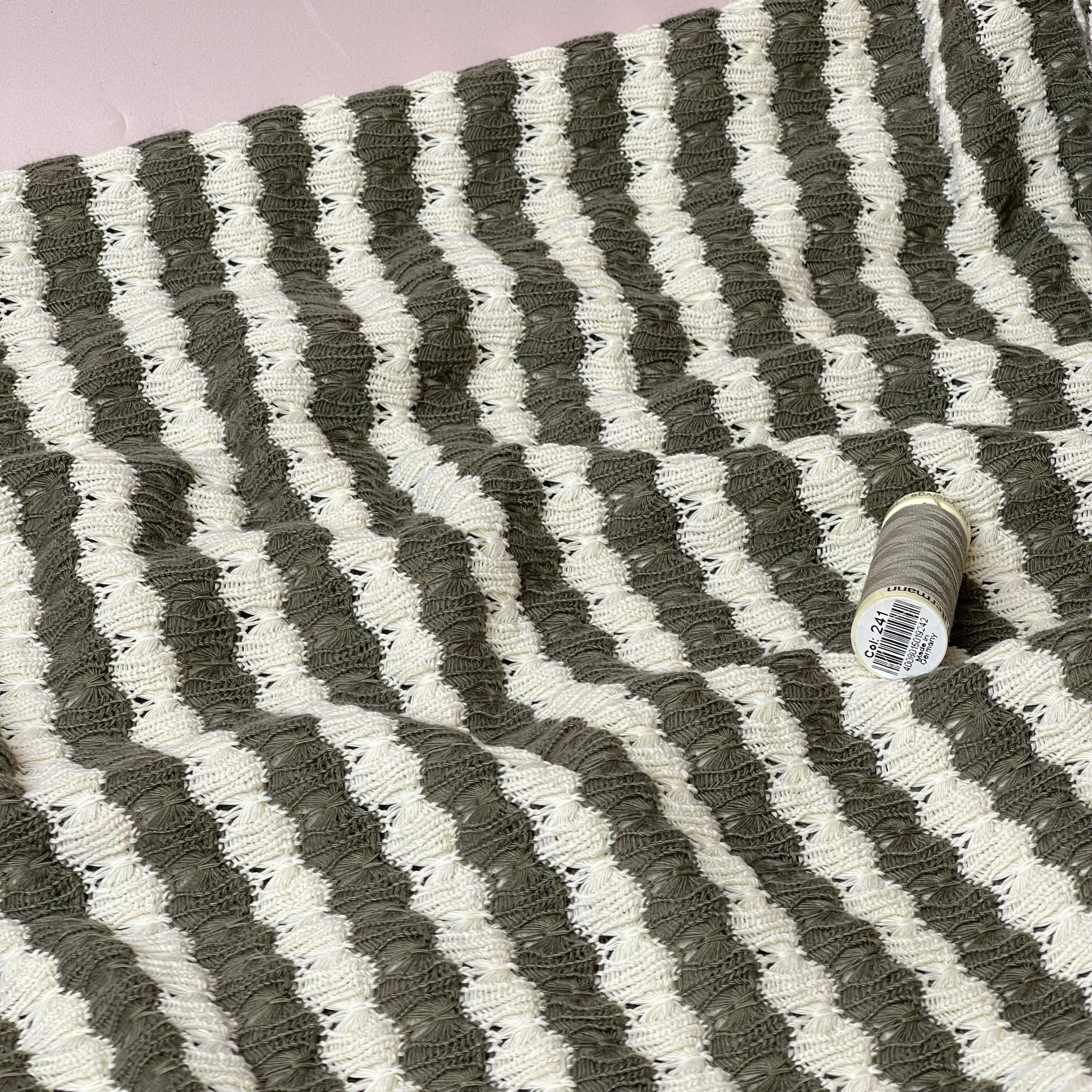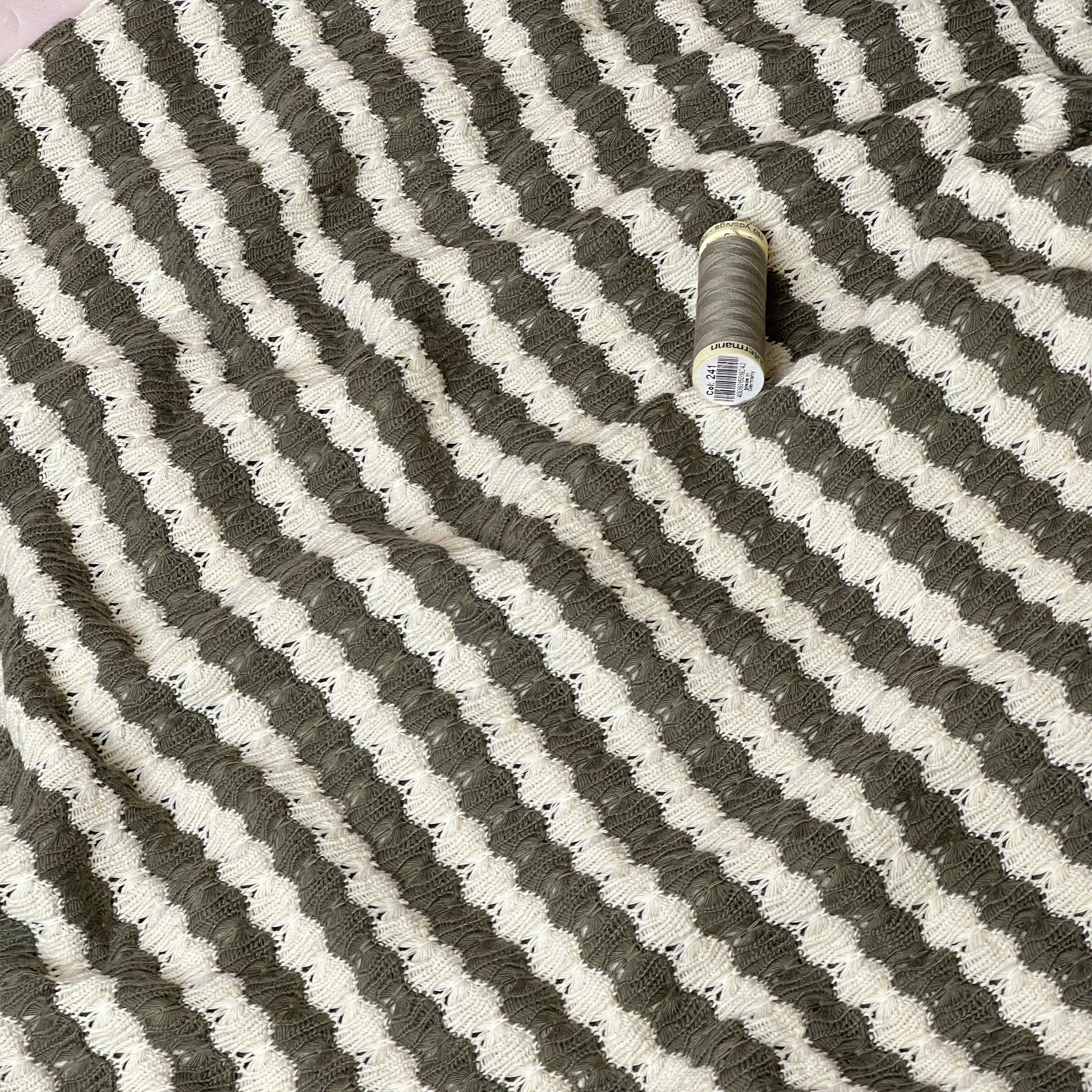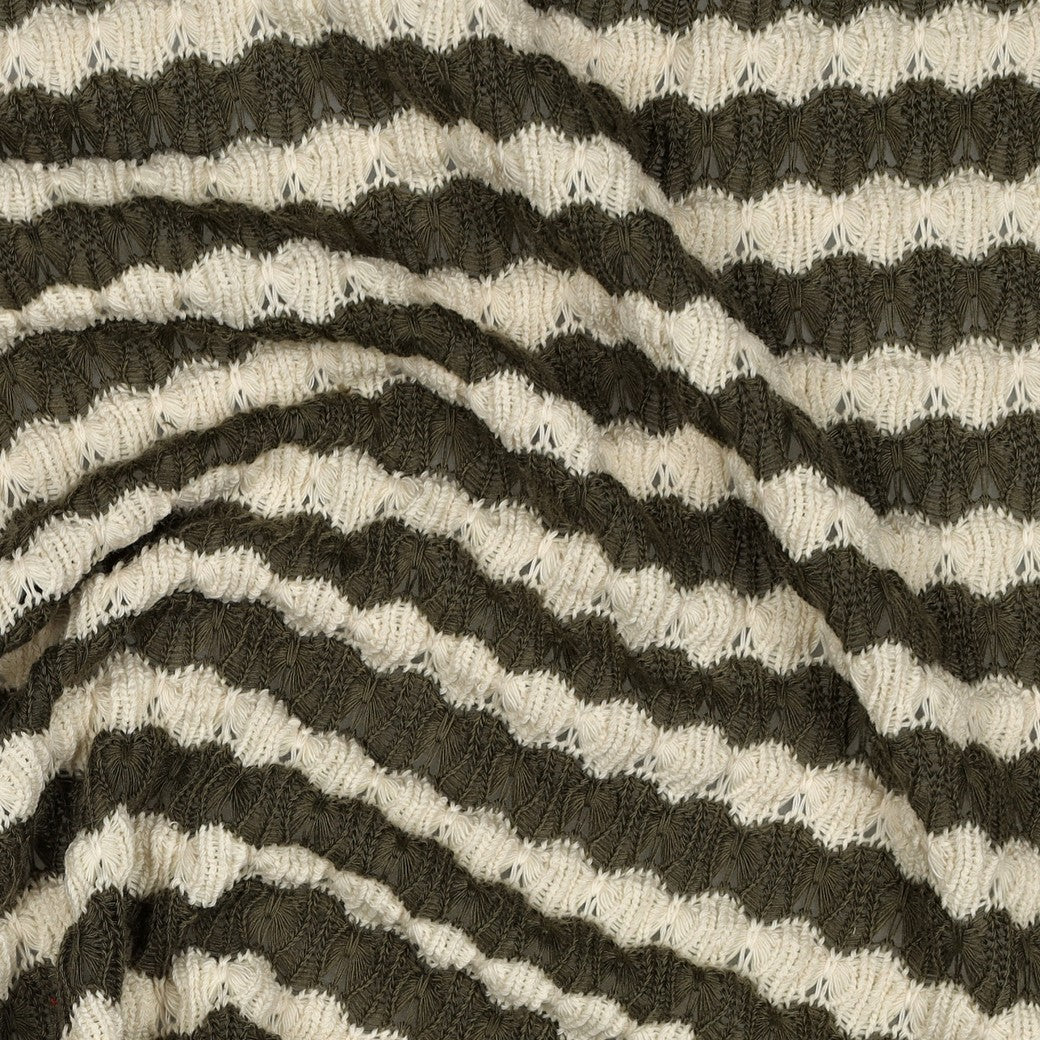 REMNANT 1.34 Metres - Summer Knitted Jacquard in Olive & Off-White Stripes