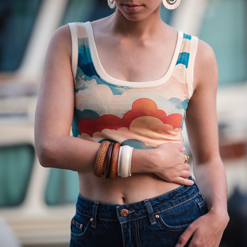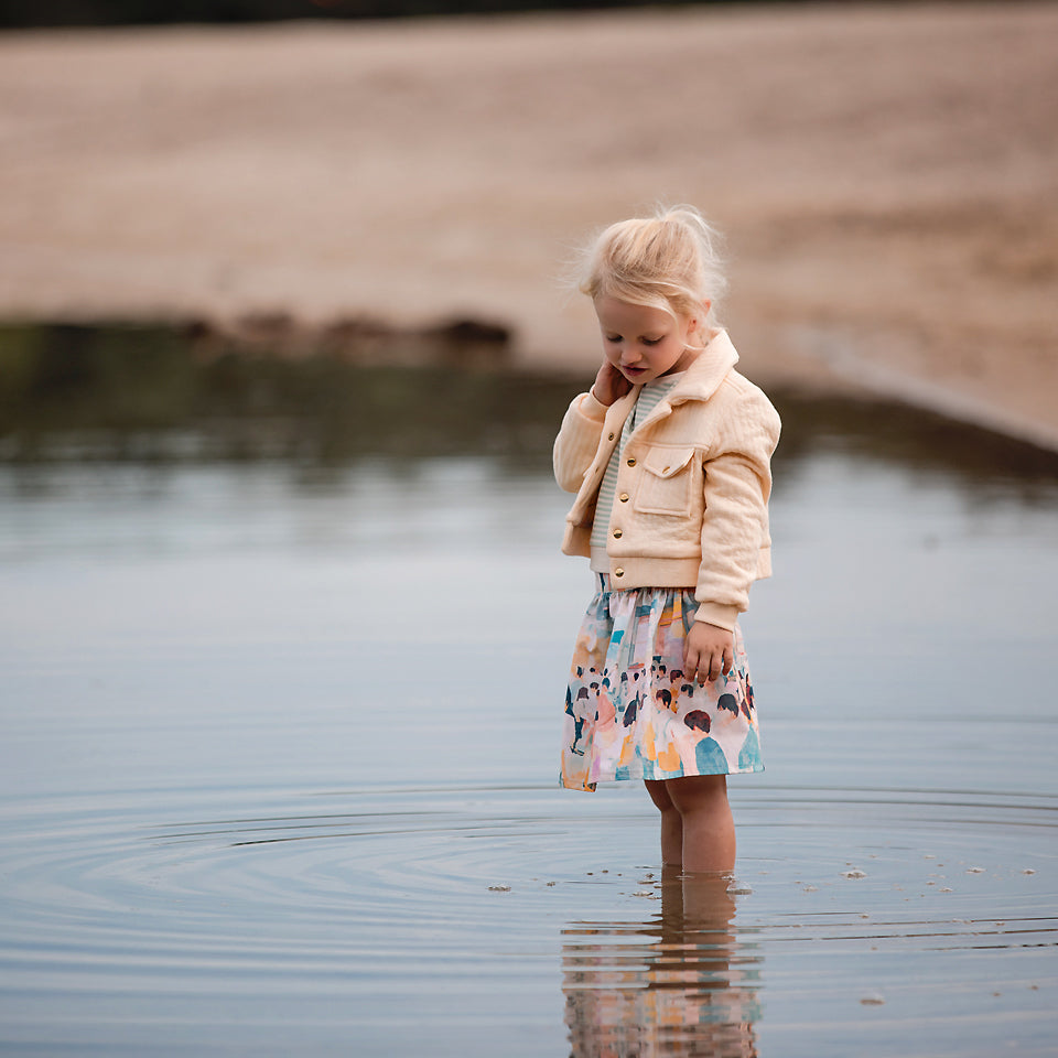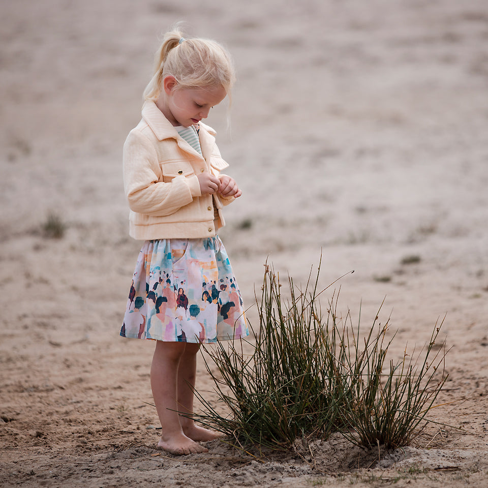 This ribbing is dyed to perfectly match with See You At Six French Terry Fabrics in warm ecru colour. It also blends well with the rest of the See You At Six collections. You will need just a little quantity to use for cuffs, collars and colour blocking or make a complete garment such as vests and t-shirts as part of the set.