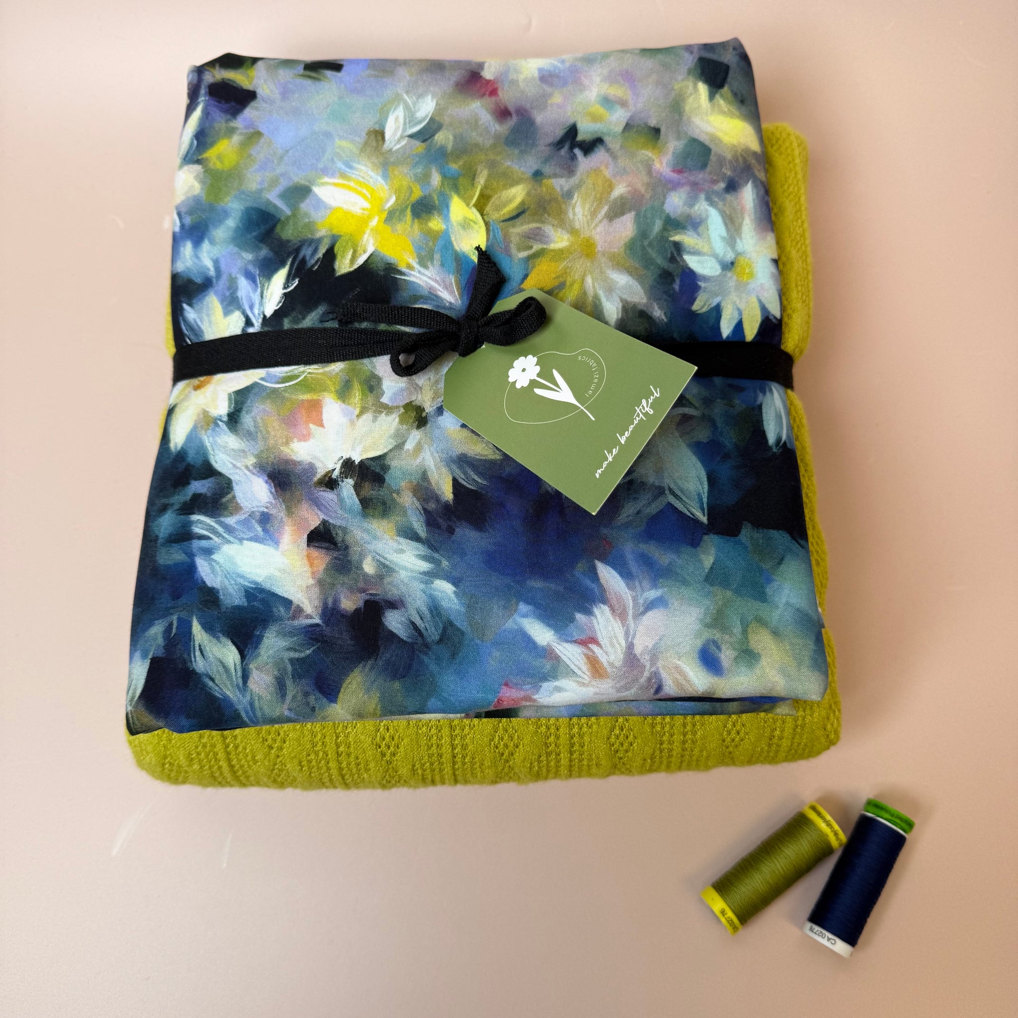 Make an Outfit Colour Bundle - Watercolour Florals Viscose in Blue and Lace Knit