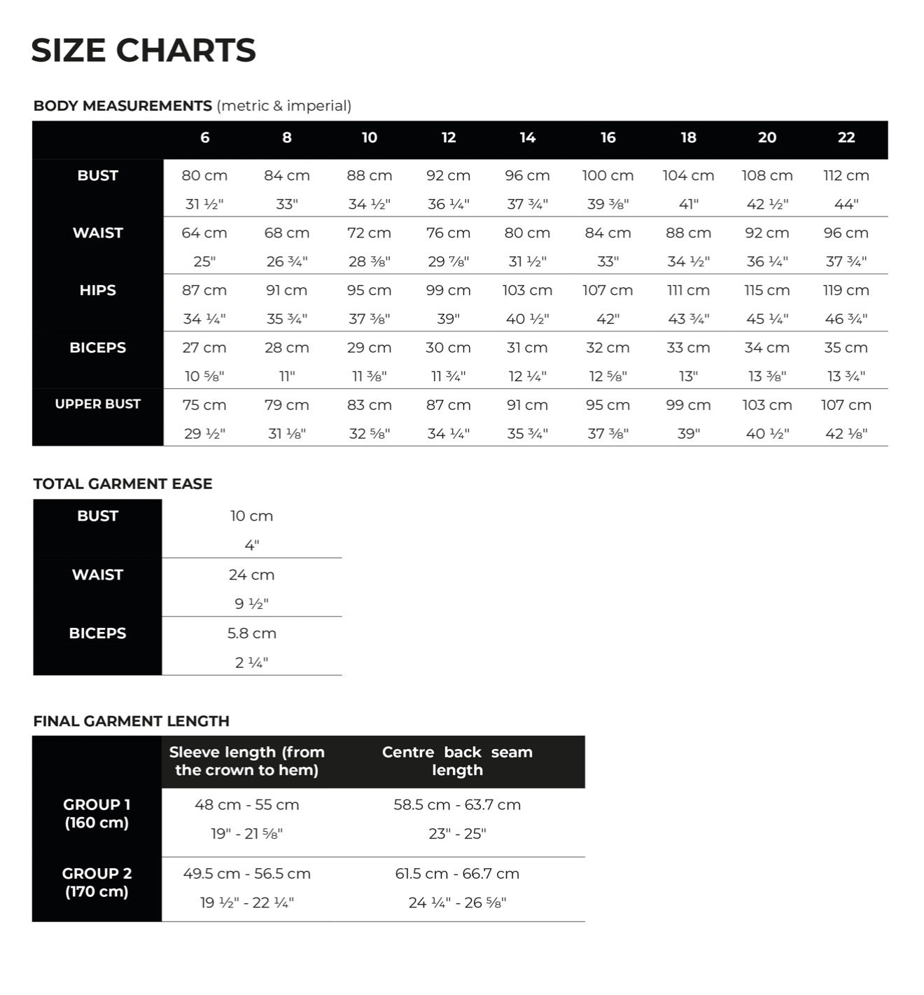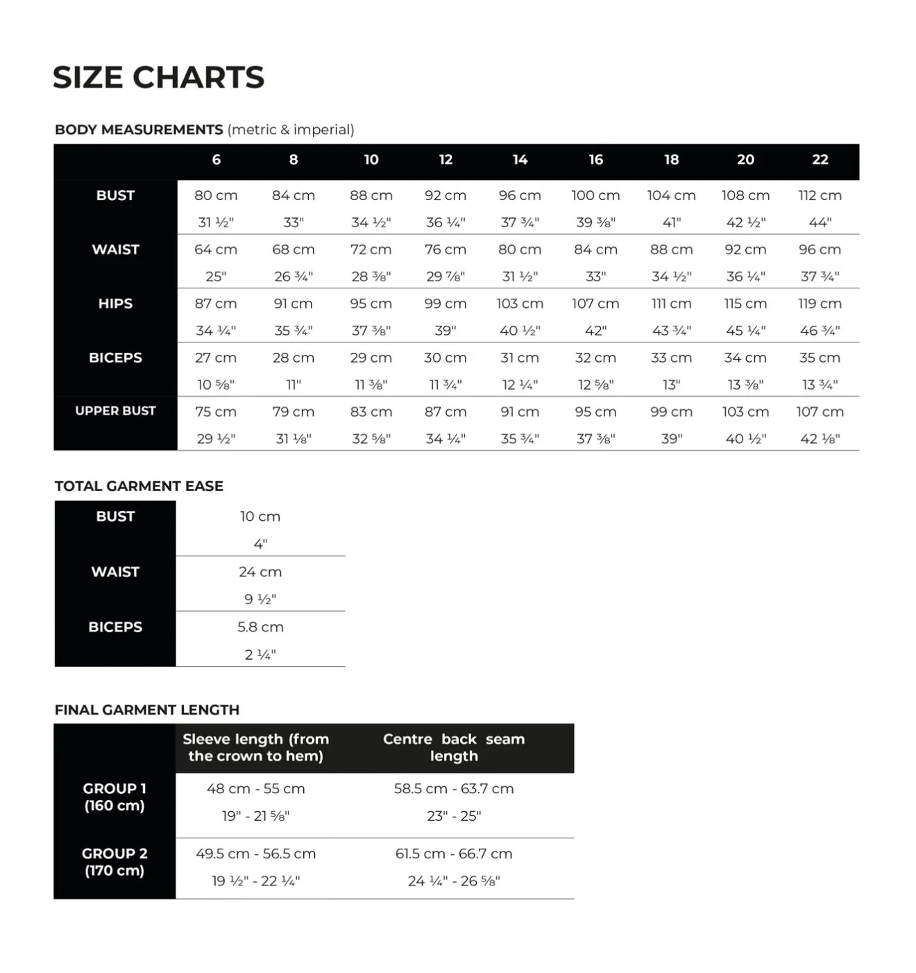 All BLP patterns are available for 160cm and 170cm height groups. Please let us know your preference. Failing to inform us your preferred height group, we will print pattern drafted for 170cm height.