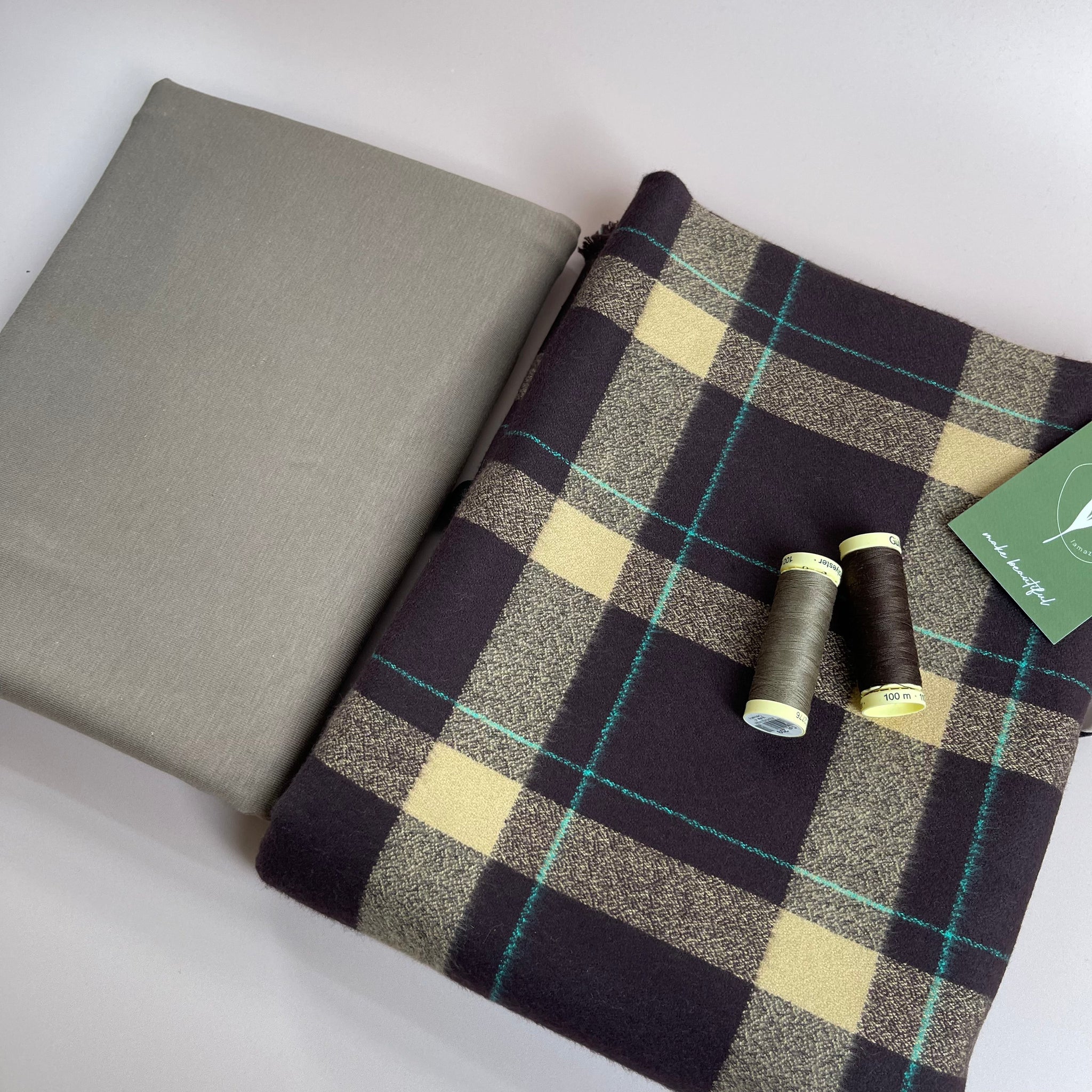 The kit includes 1m or 2.5m of 115 cm wide luxurious mammoth cotton flannel and 1m or 1.5m of our soft Eco Chic cotton bamboo jersey fabrics. Please select your size preference in the drop down options. You also have the option to add Tilly and the Buttons Jaimie pattern to your purchase.