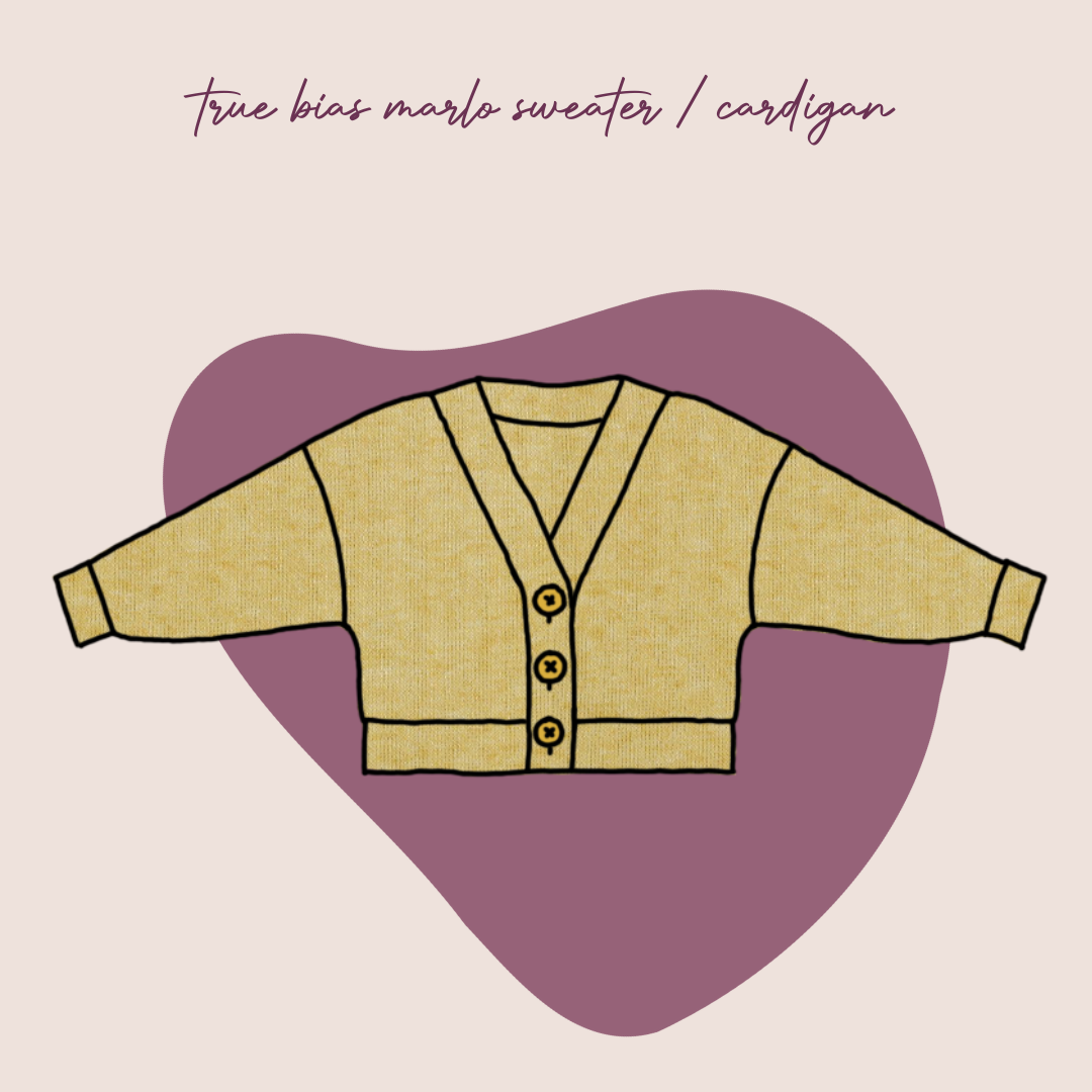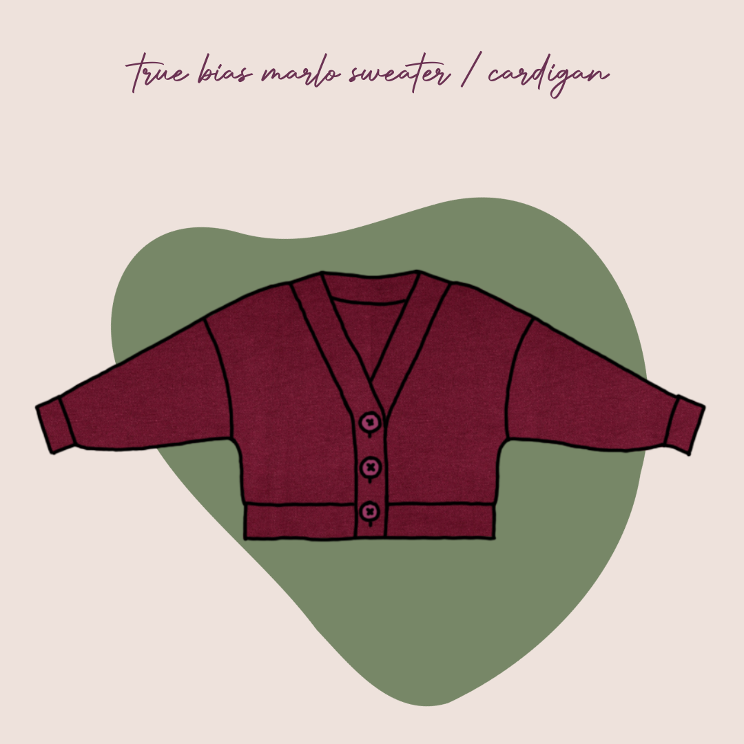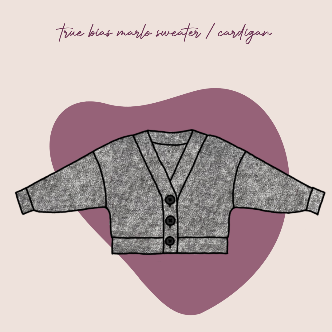- The Marlo Sweater printed A0 paper pattern and printed instructions by True Bias for sizes 0-18 B cup (bust 82-113cm) or D cup sizes 14-30 (bust 105-146cm)