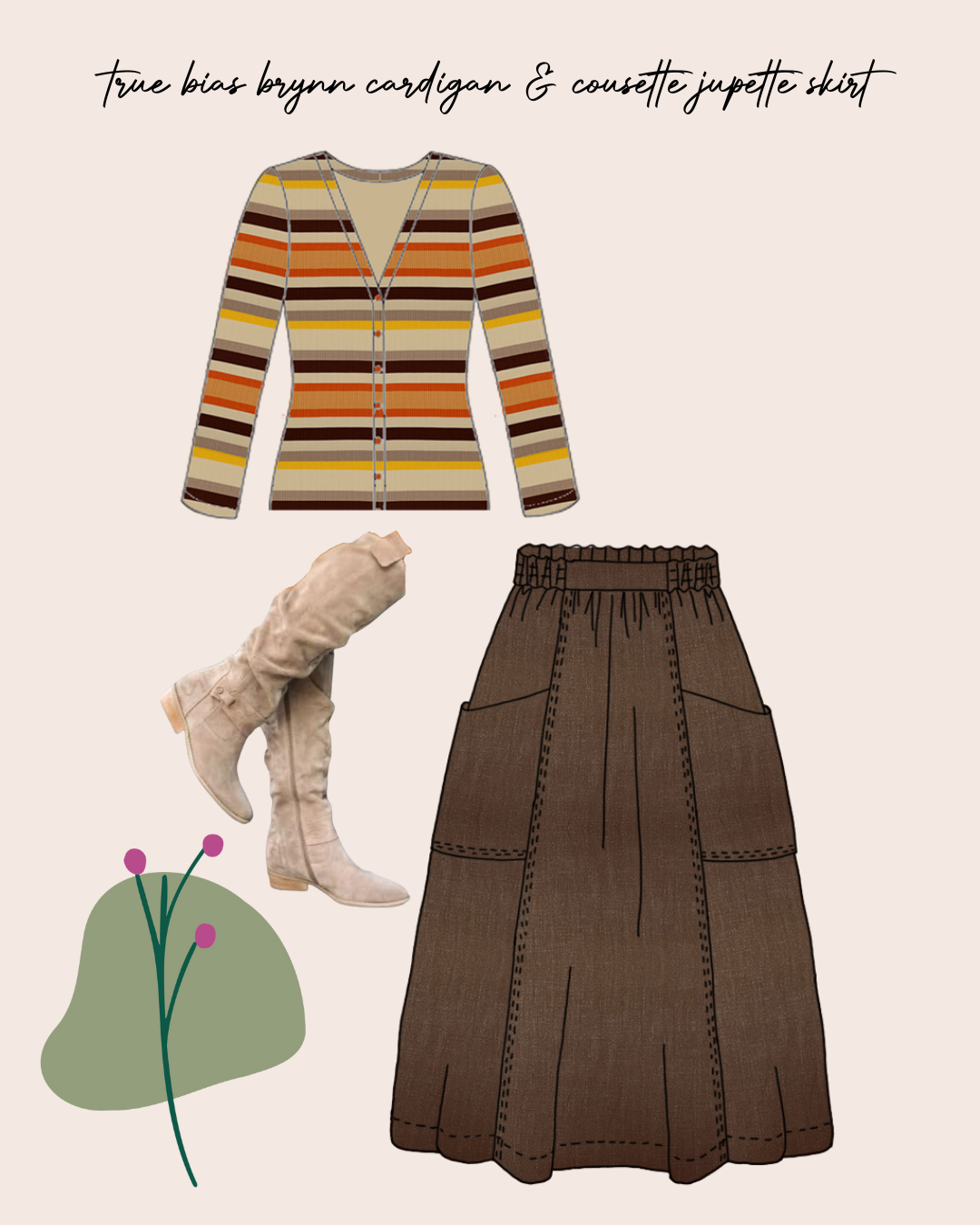 Sewing Kit -True Bias Brynn Cardigan Top Sewing Kit in Cotton Ribbed Jersey (multiple print options)