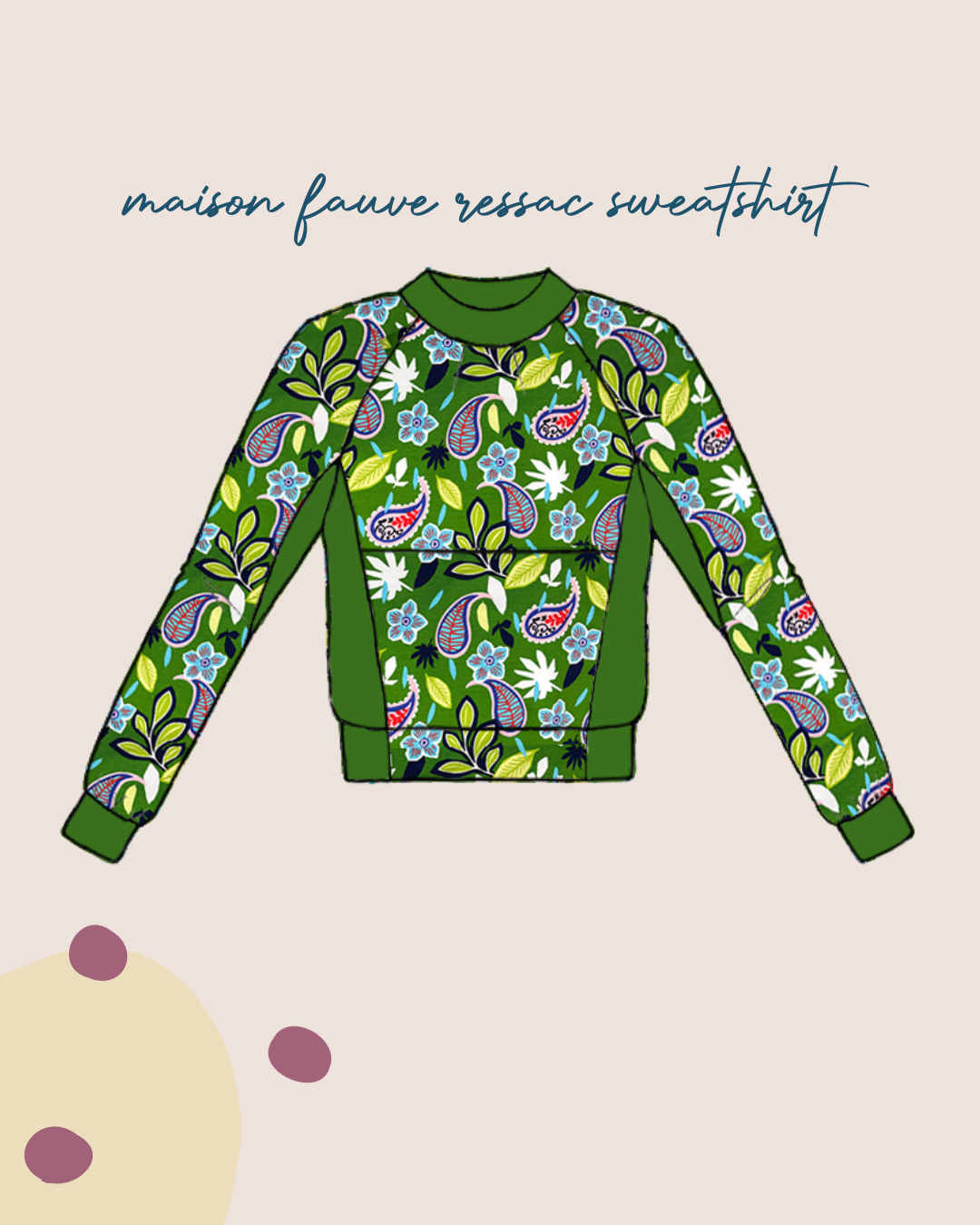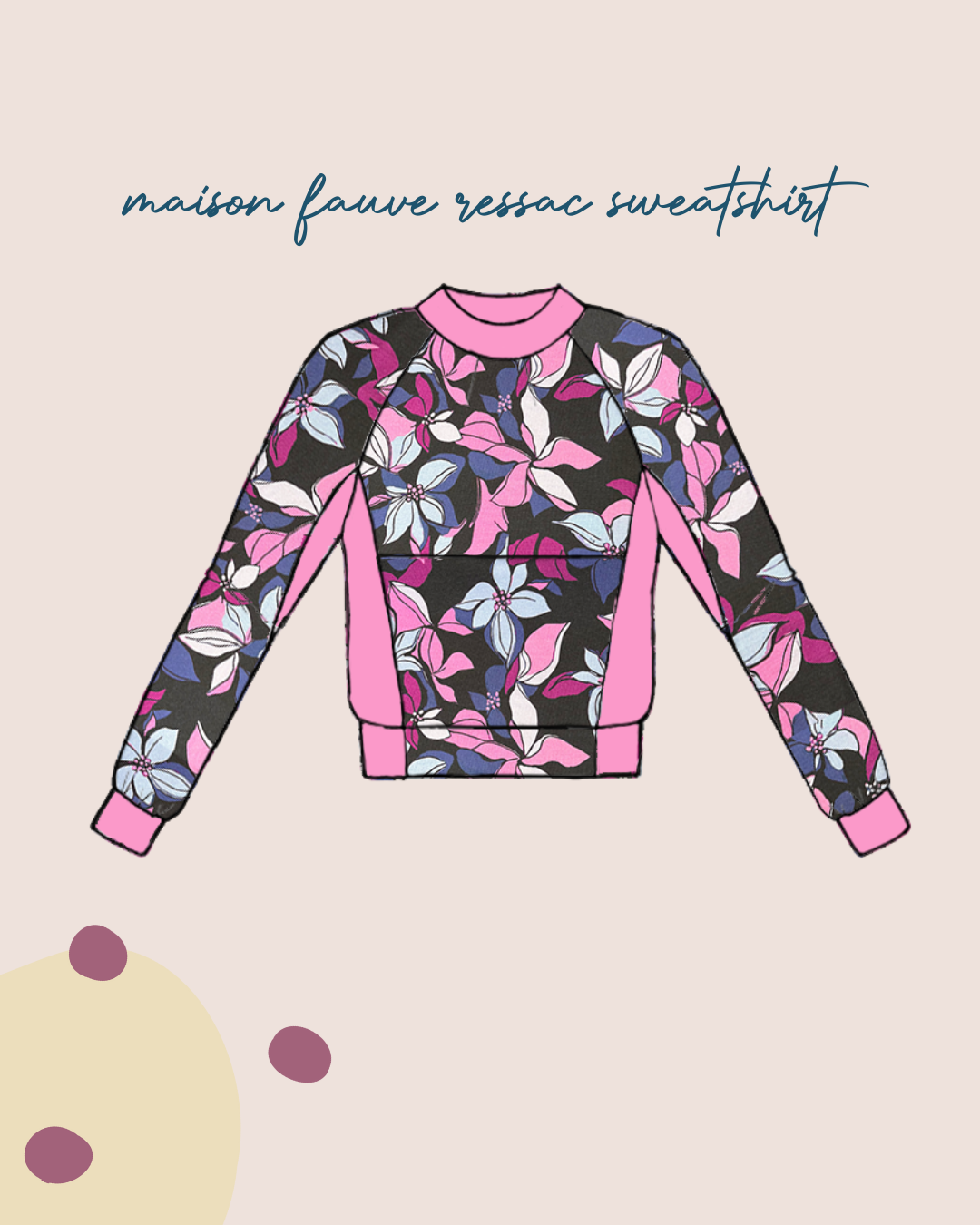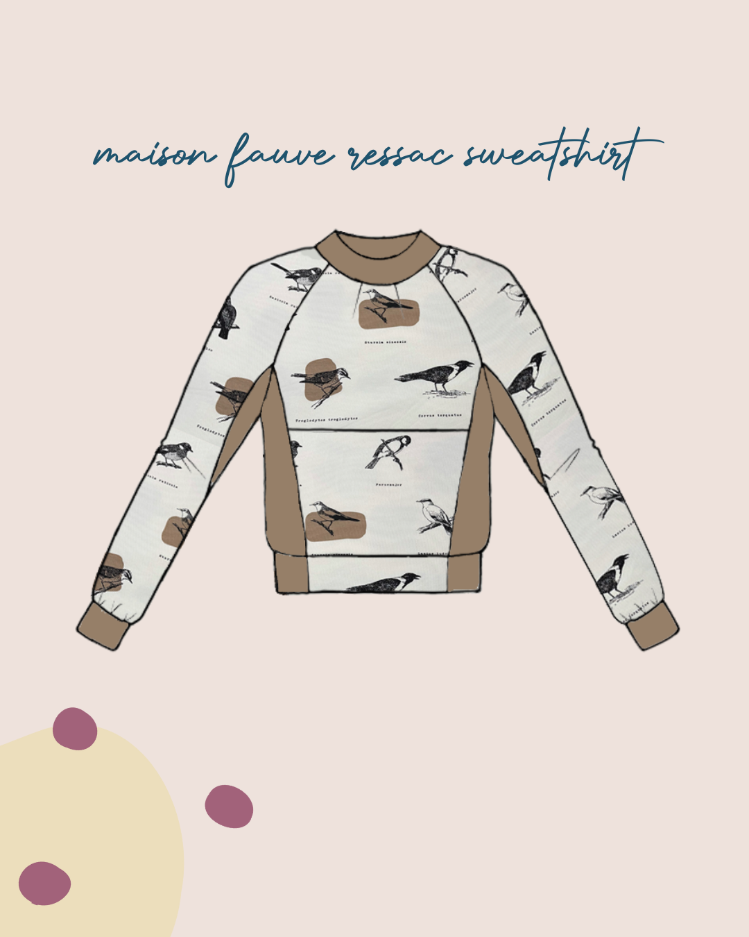 The kit contains all supplies you will need apart from the sewing pattern, to make one of our favourite autumn / winter wardrobe staples RESSAC sweatshirts - a must have modern sweatshirt pattern with signature Maison Fauve design elements, paired with our finest quality sweat-shirting and french terry fabrics in a range of plain colours and prints.
