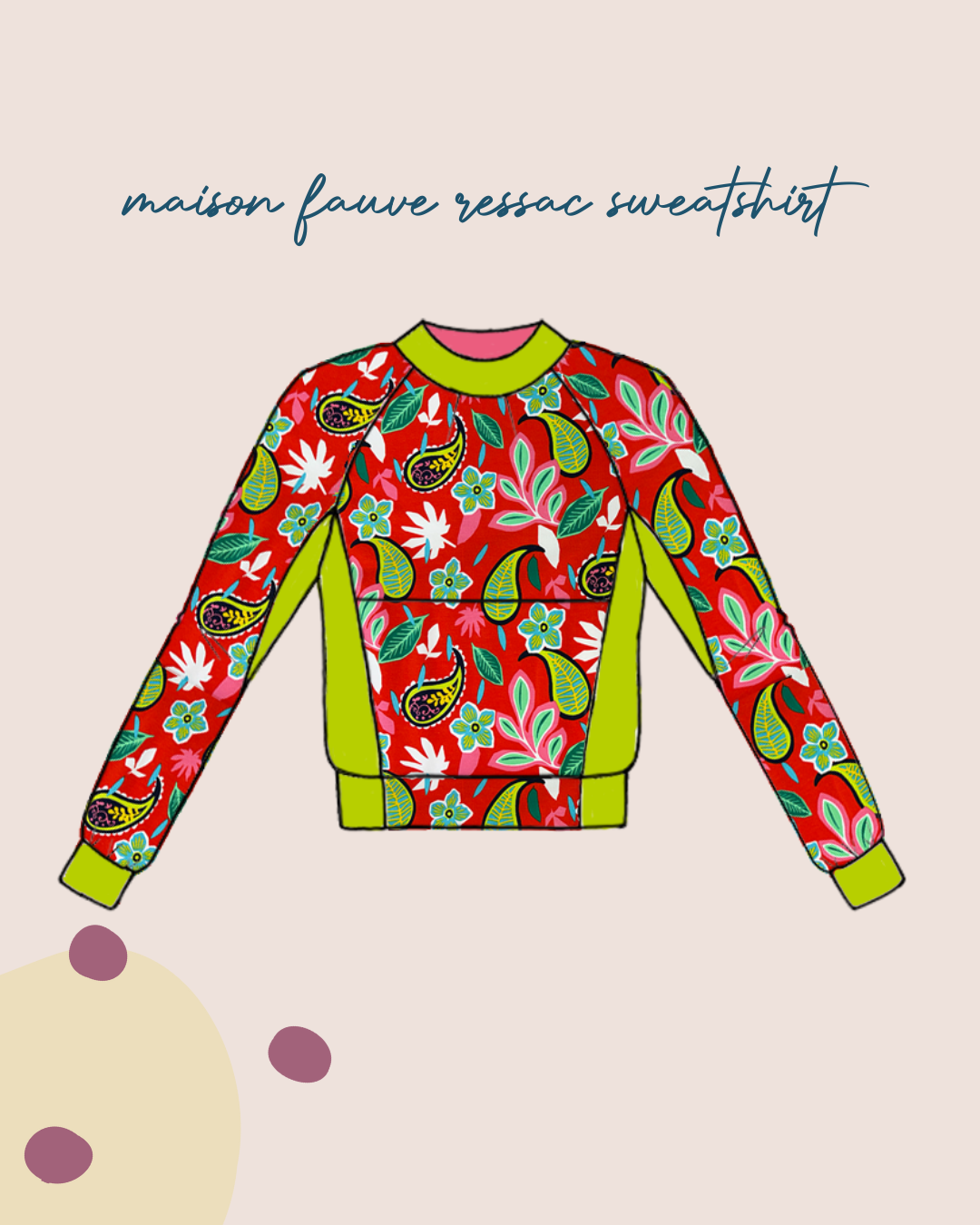 This kit contains all supplies you will need to make one of our favourite autumn / winter wardrobe staples RESSAC sweatshirts - a must have modern sweatshirt pattern with signature Maison Fauve design elements, paired with our finest quality sweat-shirting and french terry fabrics in a range of plain colours and prints.