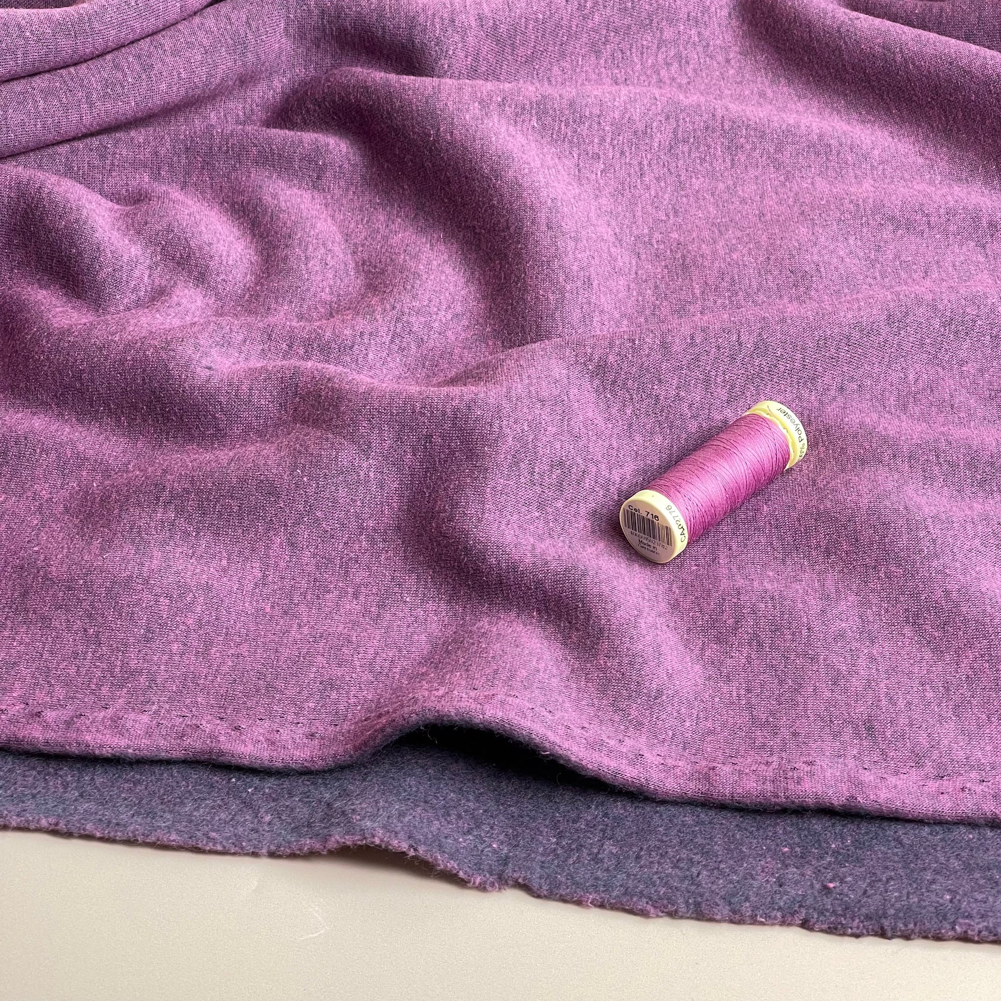 We are delighted to present this snuggly and soft, high quality brushed sweat-shirting fabric with melange effect and contrast colour warm brushed back on the reverse side. This fabric is ideal for making hoodies, joggers, cardigans, winter warm dresses and gowns, anything you’d like to snuggle up in the winter cold days. It comes in a beautiful range of colours and is 150cm wide.