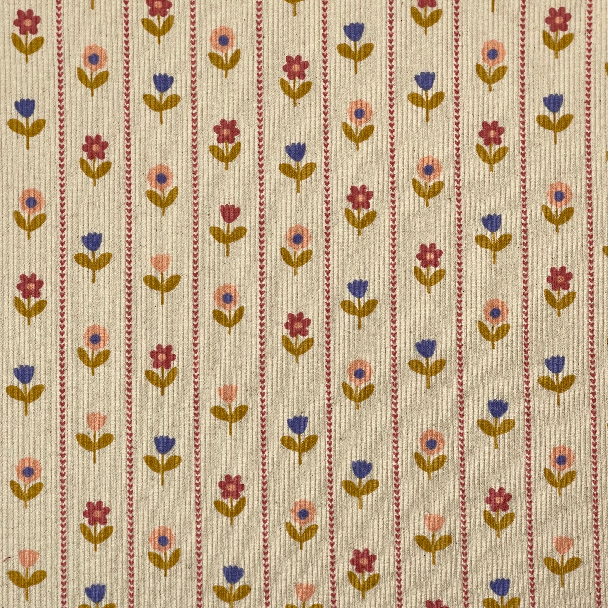 Flower Stripes on Natural Cotton Ribbed Jersey