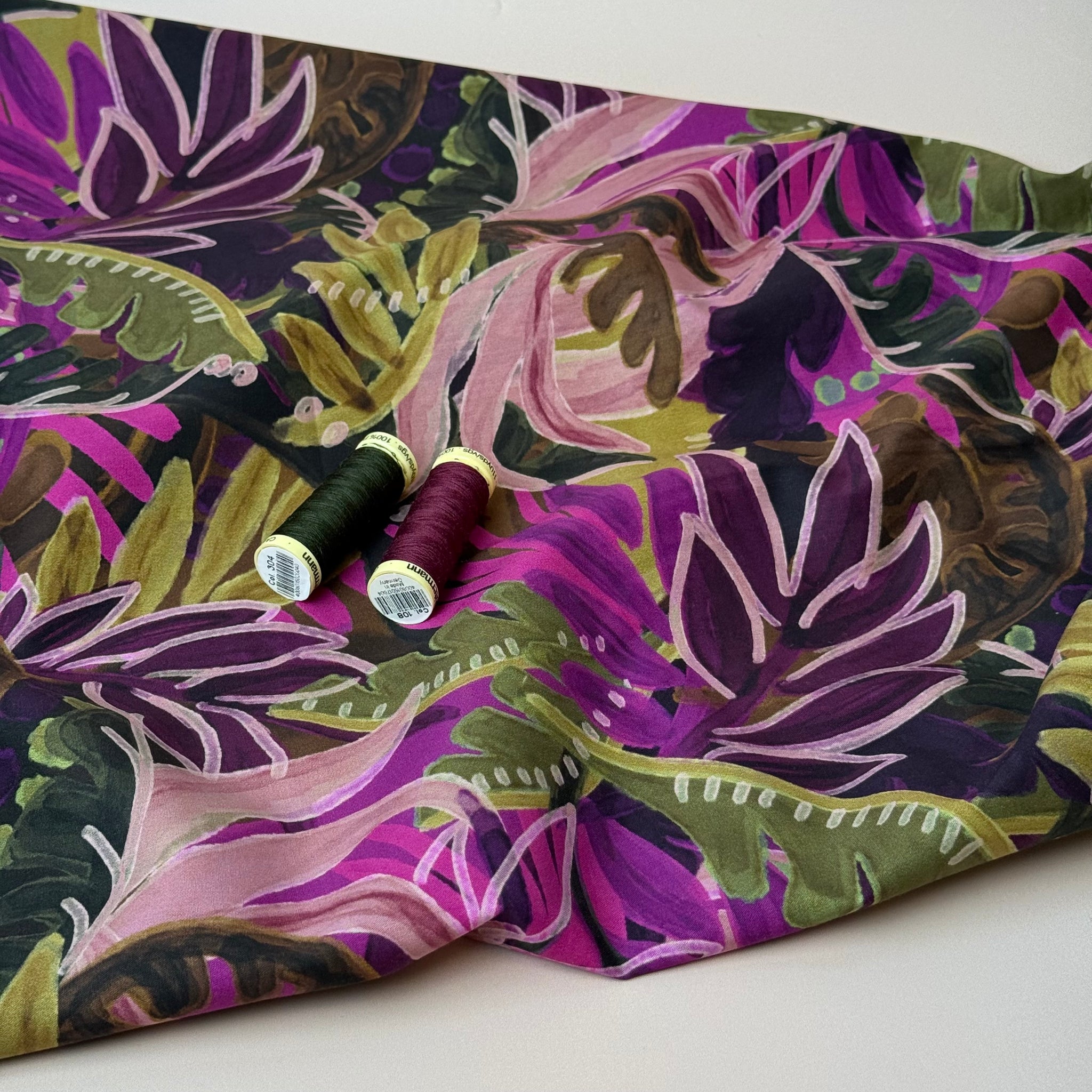 Tropical Foliage Magenta Cotton Viscose Fabric