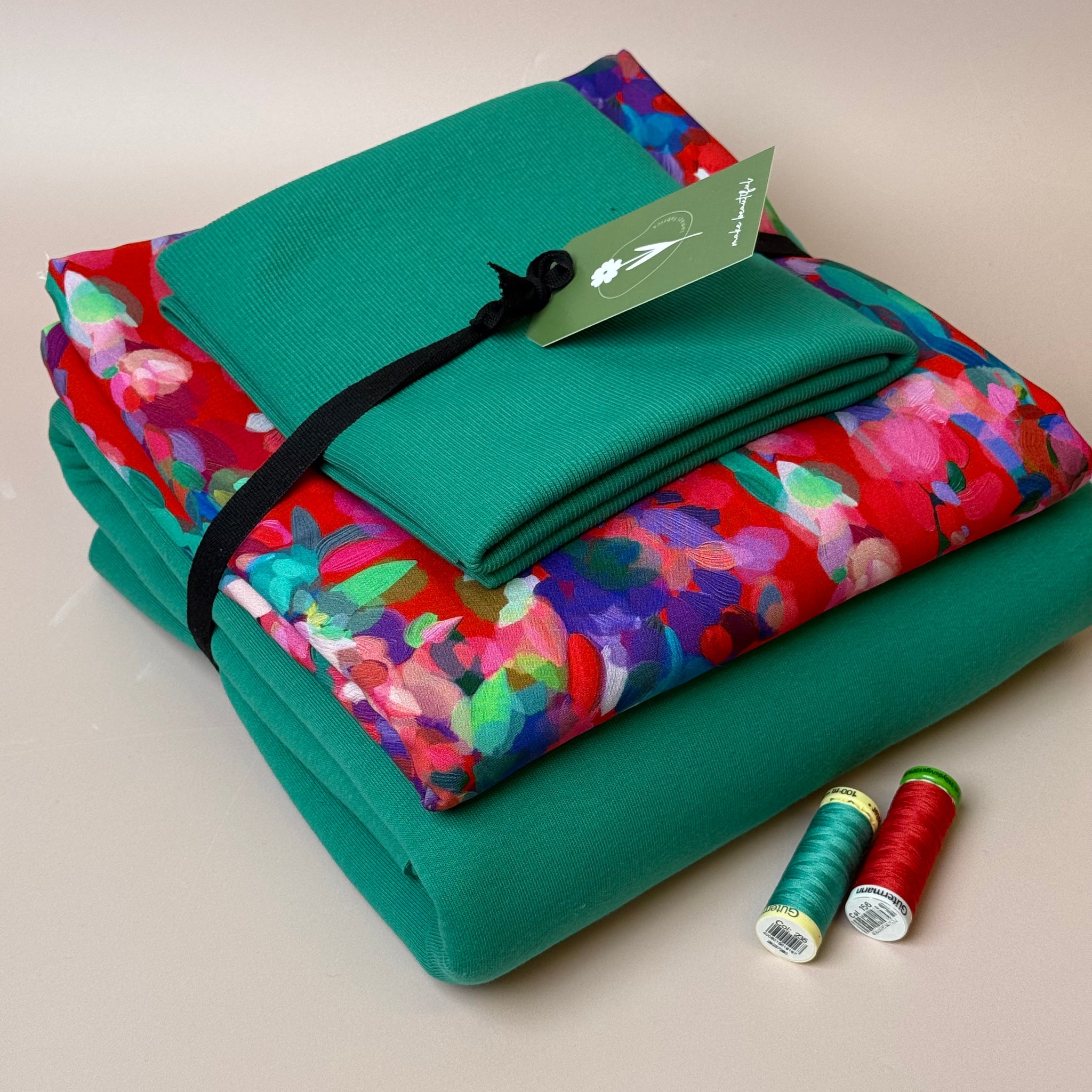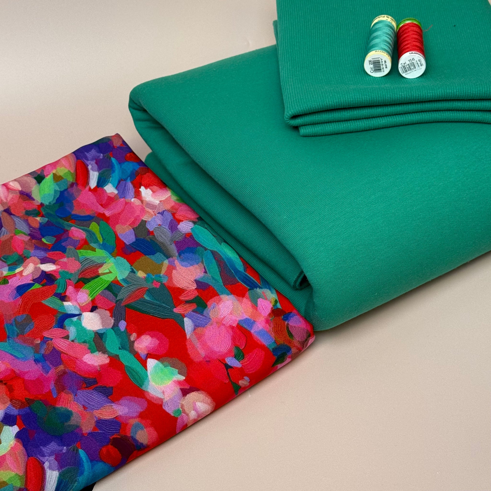For this eco bundle we chose our exclusive and bestselling Lupine Petals Red Ecovero Viscose and matched it with this extra soft and snuggly sweatshirting and matching ribbing. They make a beautiful bundle together and are of the finest quality in our collection.