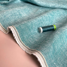 This fabric is lightweight and breathable with a soft and slub feel to it, ideal for creating elegant summer garments for the great qualities that linen can offer. The melange effect is created when two different colour yarn dyed threads are woven together to create a slub look, in this case petrol blue and white.