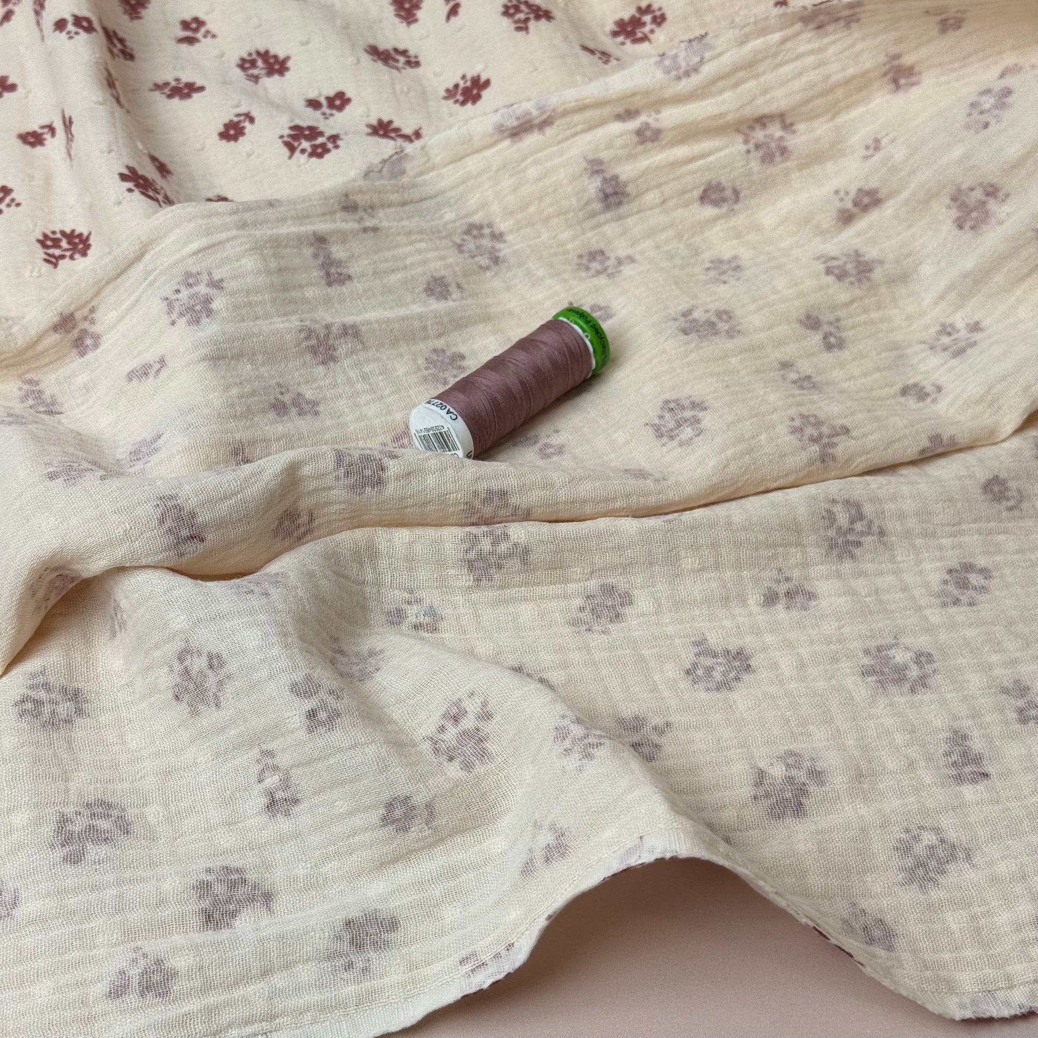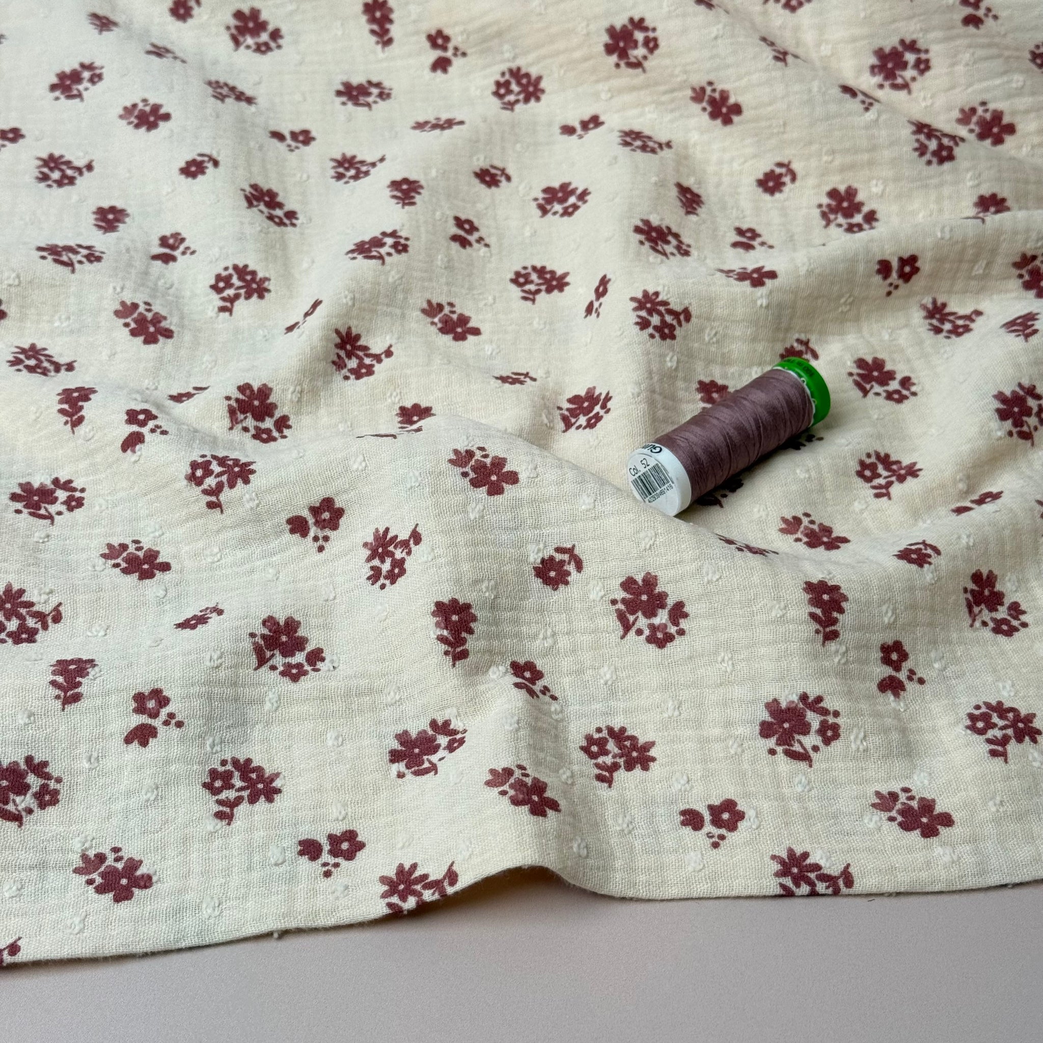 This stunning, soft cotton double gauze features a ‘Dobby’ weave with raised dots to and a crinkle texture to add interest to this fabric. It features ditsy florals in pink shades, This fabric is perfect for summer sewing.
