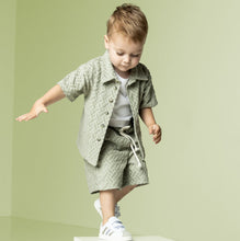 We are delighted to be stocking this elegant yet cosy and comfortable towel jacquard fabric with a graphic design. This fabric is soft and flowy ideal for making t-shirts, shorts, tops, wide leg trousers even dresses. It’s a perfect fabric for Childrenswear or for adults.
