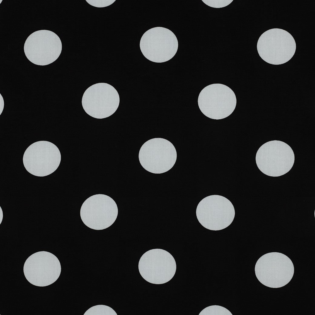 Large Polka Dots on Black Viscose Poplin Fabric