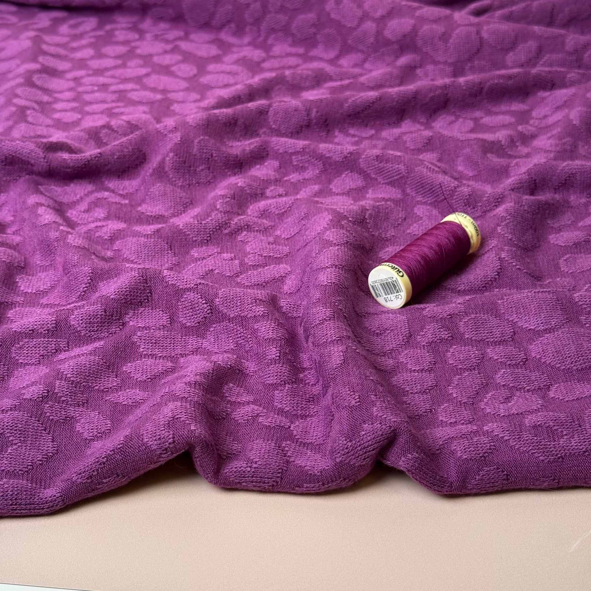 This lightweight and elegant sweater knitted fabric is very soft and drapey and features cheetah design woven in. It is ideal for making light and elegant jumpers, wrap cardigans, boat neck sweaters or knitted dresses. It has similar properties to viscose jersey. It is available in a range of beautiful colours on our website.