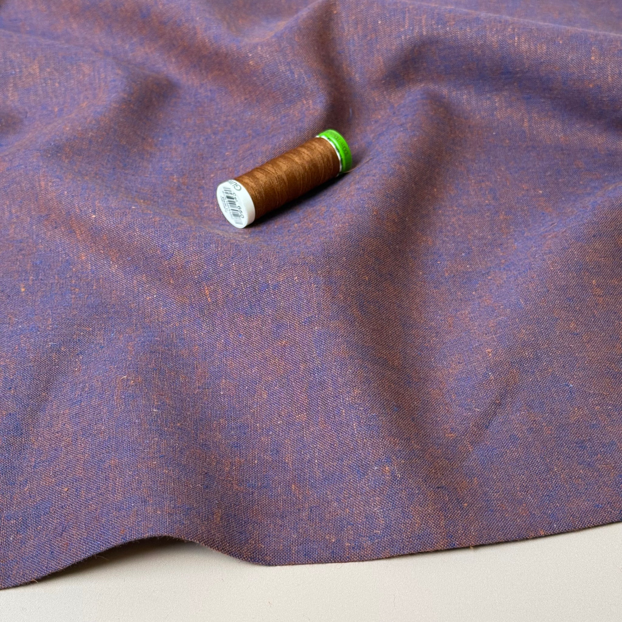 This gorgeous yarn dyed linen cotton blend fabric features a melange effect due to the purple and copper fibres weaved together. It is soft and breathable, ideal for adding some core pieces to your wardrobe such as shirts, tunics, trousers and dresses.