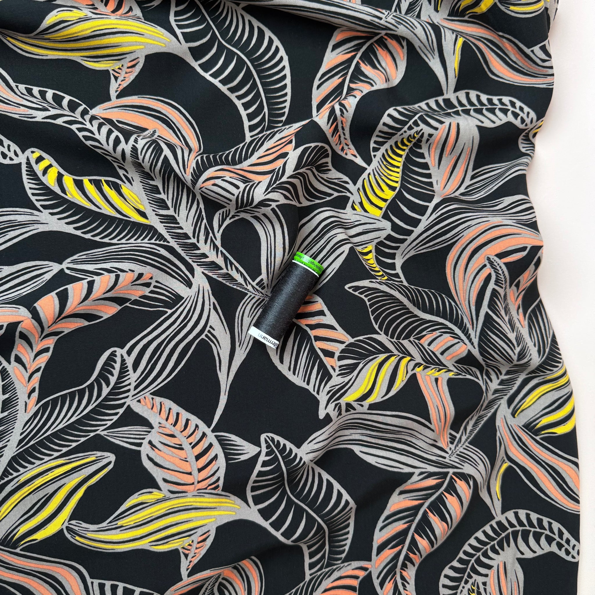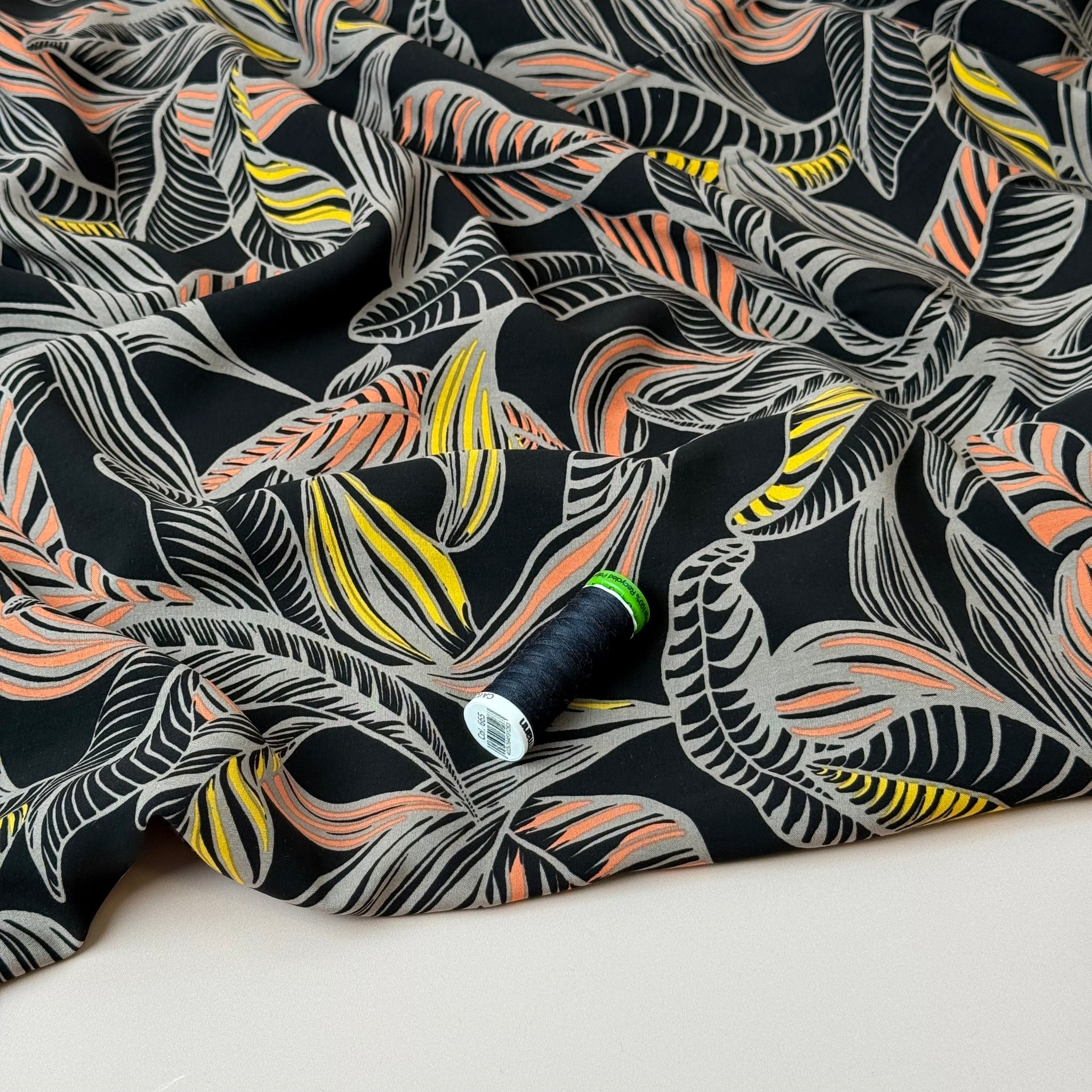 Leaves on Black LENZING™ ECOVERO™ Viscose Fabric