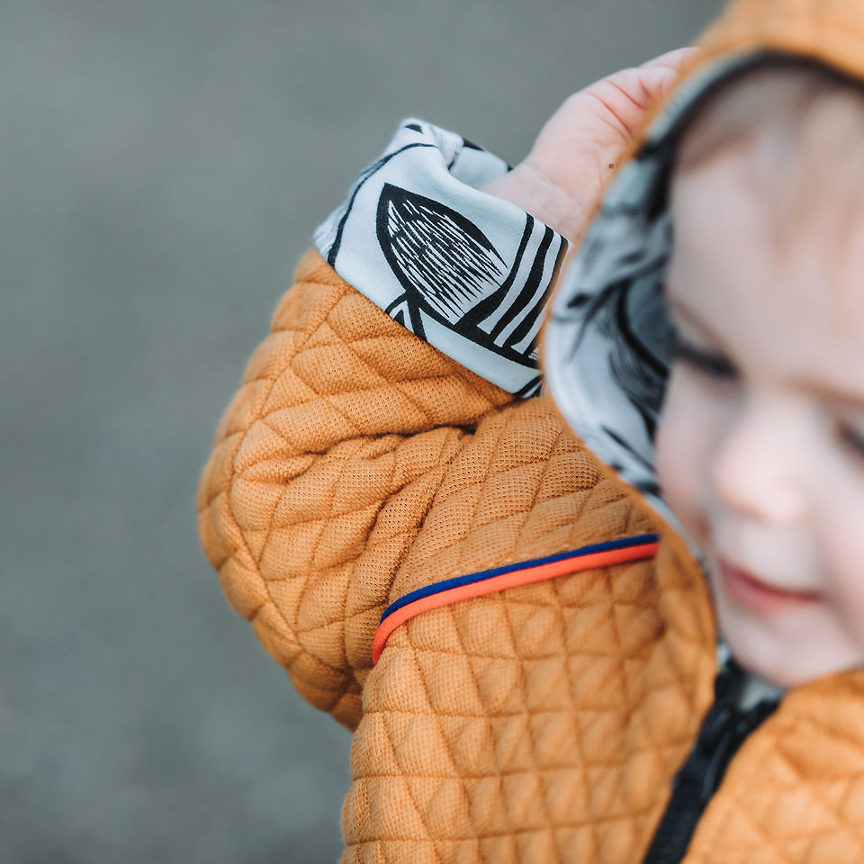 This extra wide knitted fabric has a piqué texture and is padded/quilted in diamond shapes, suitable for stylish jackets, sweaters, waistcoats and simple warm dresses.