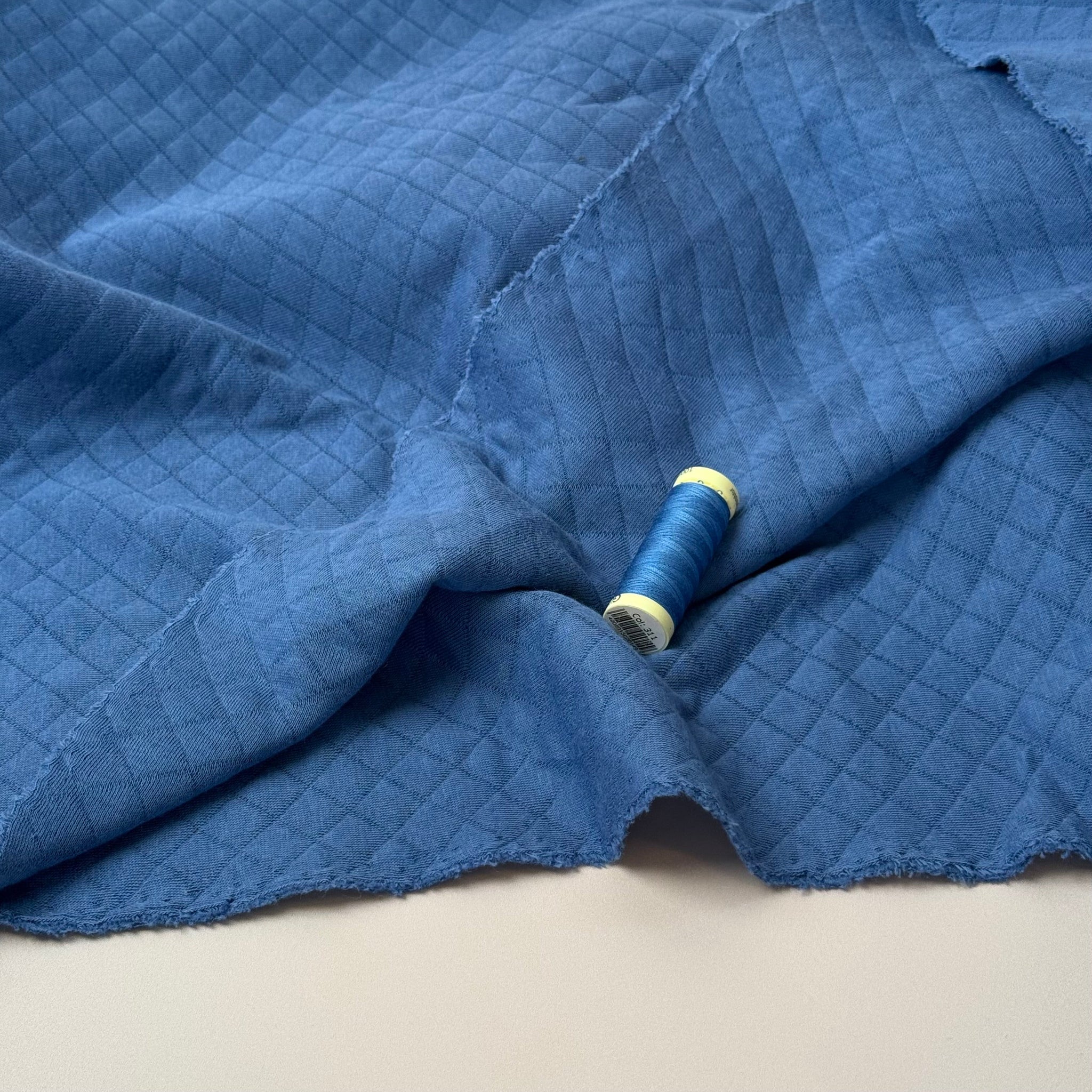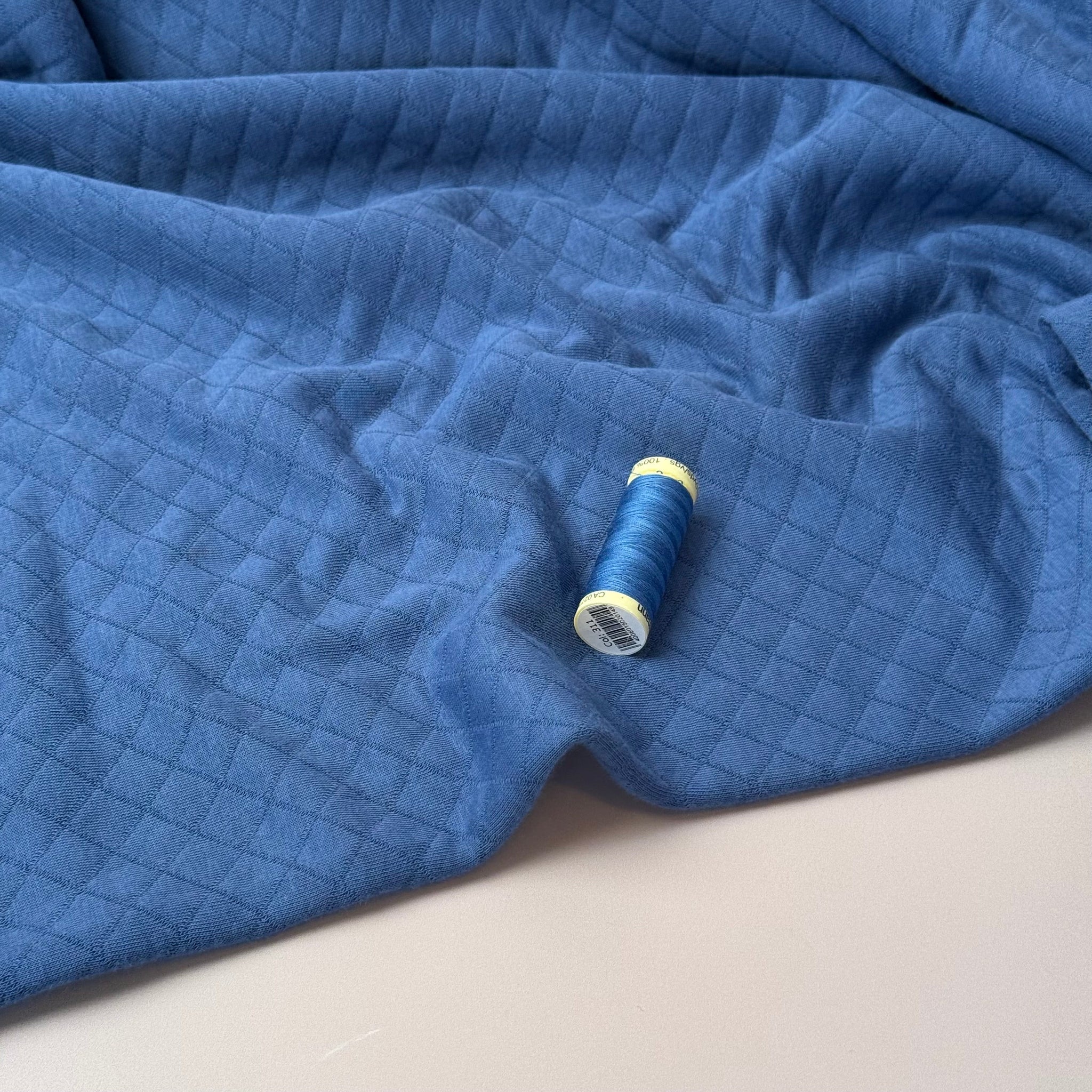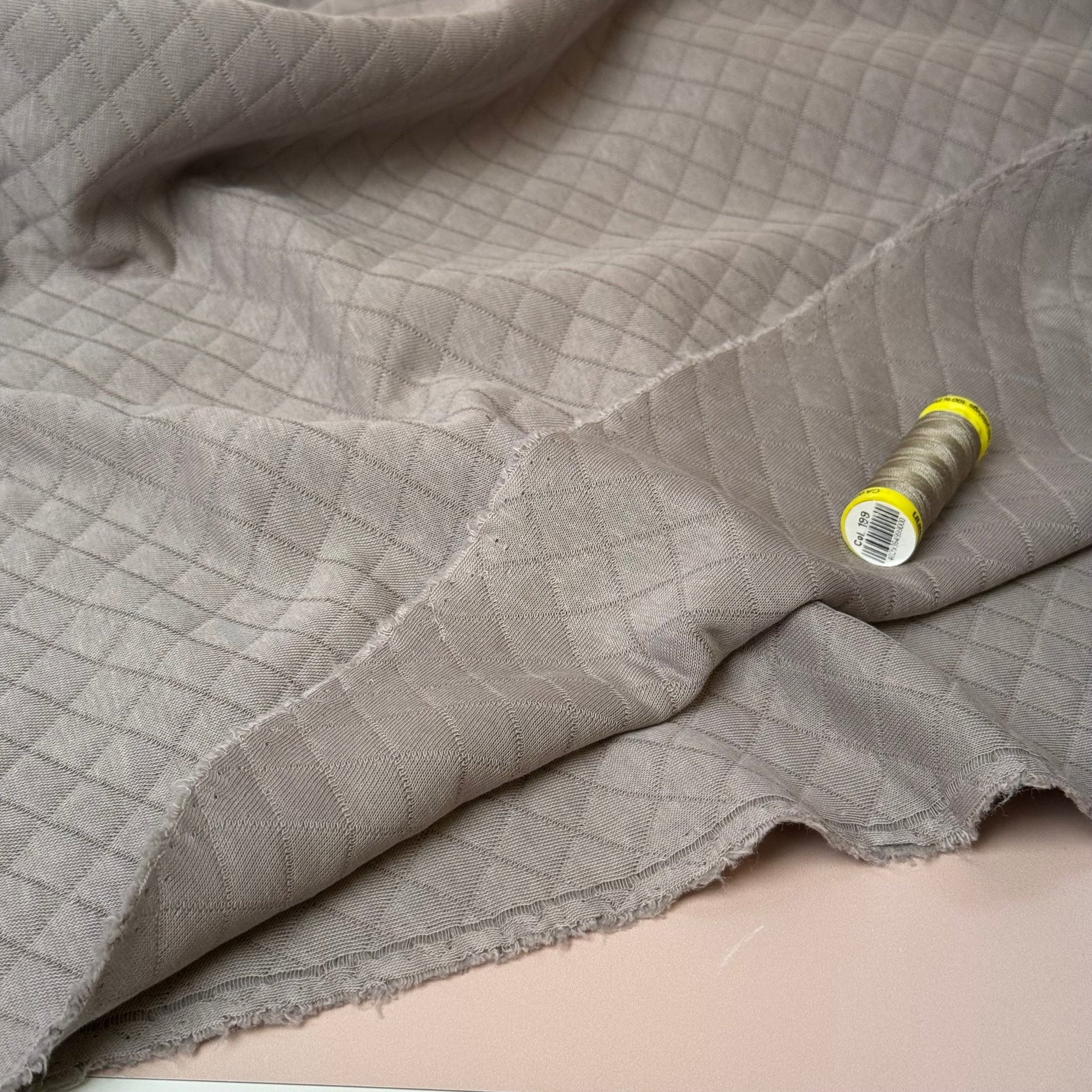 Beautiful, soft and warm diamond quilted double knit fabric made with cotton on both sides and a fill layer of polyester in the middle. Featuring a simple timeless diamond pattern, it is ideal for sewing cosy jumpers, sweater dresses, cardigans or light jackets.