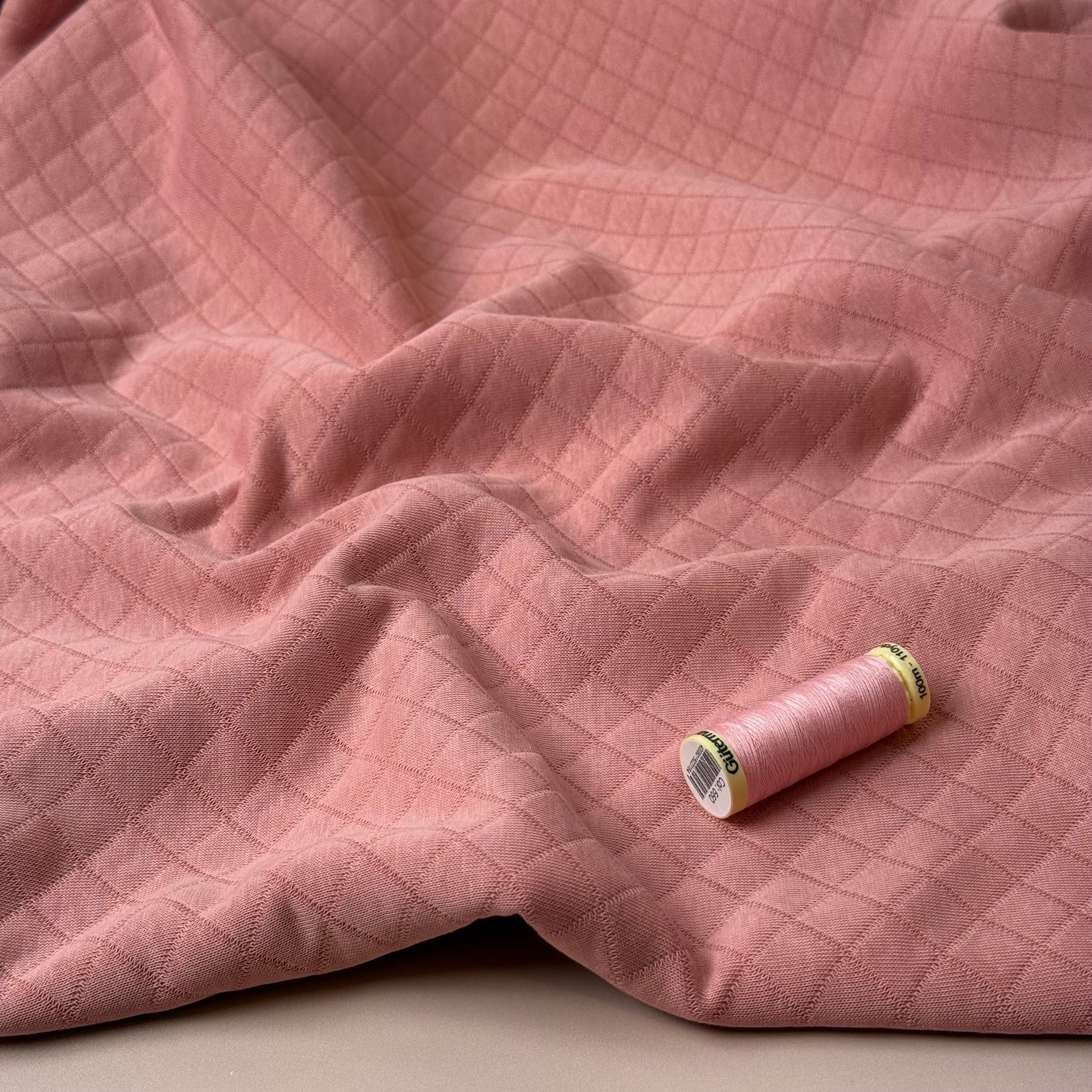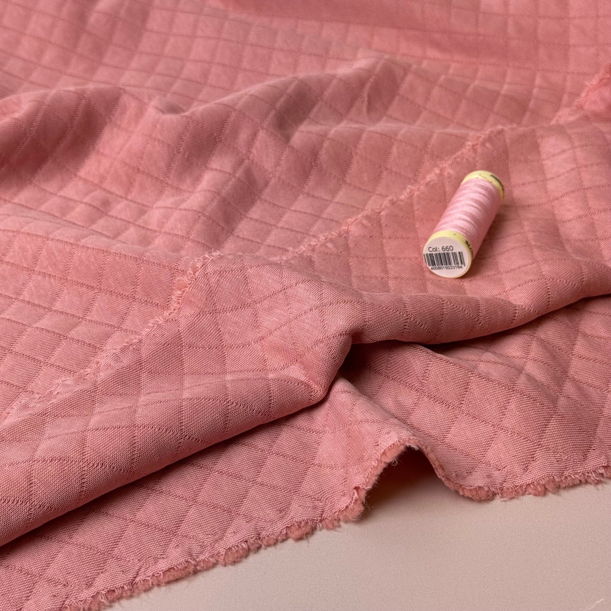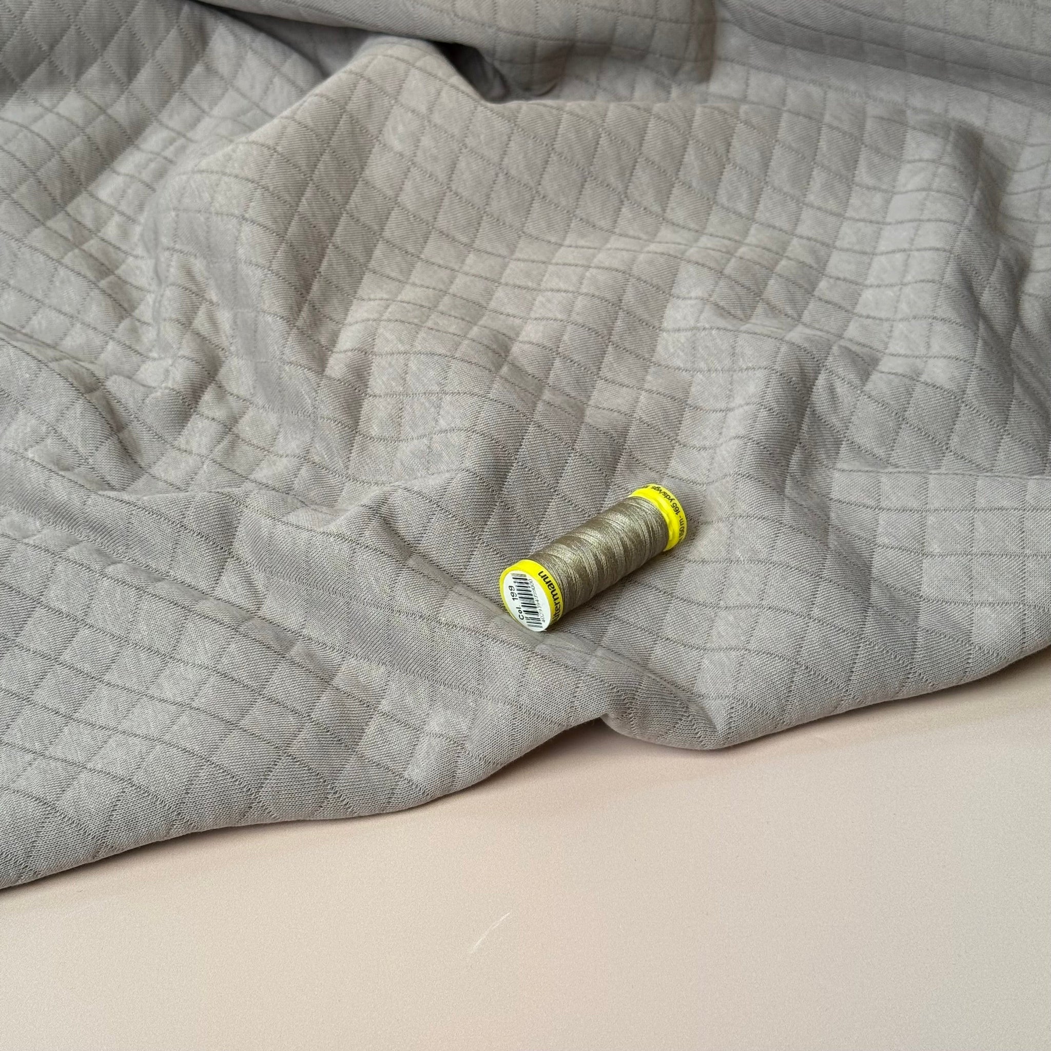 Beautiful, soft and warm diamond quilted double knit fabric made with cotton on both sides and a fill layer of polyester in the middle. Featuring a simple timeless diamond pattern, it is ideal for sewing cosy jumpers, sweater dresses, cardigans or light jackets.