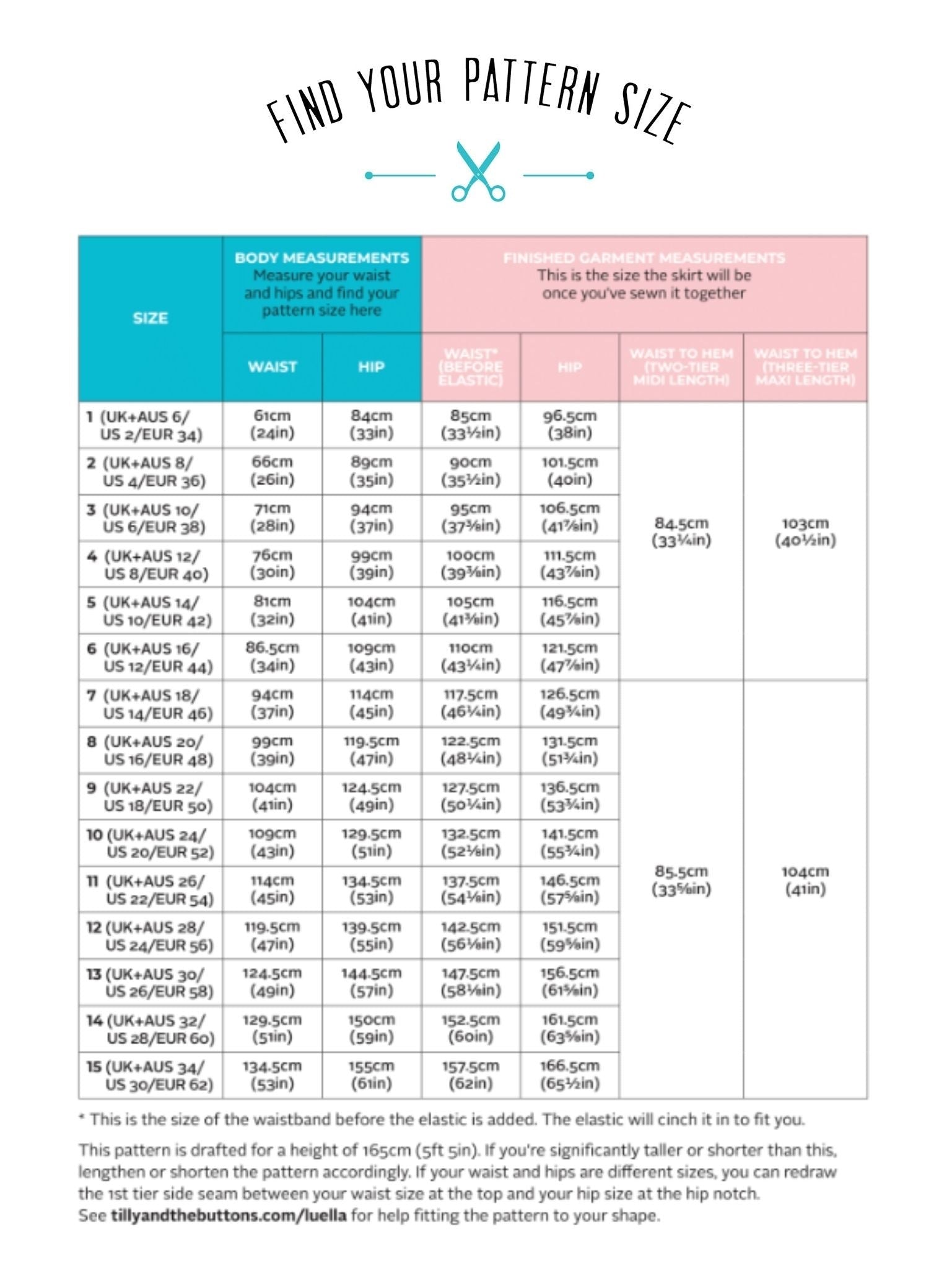 - Tilly and the Buttons Luella paper pattern packed beautifully with the instructions for the waist sizes 61cm-134.50cm